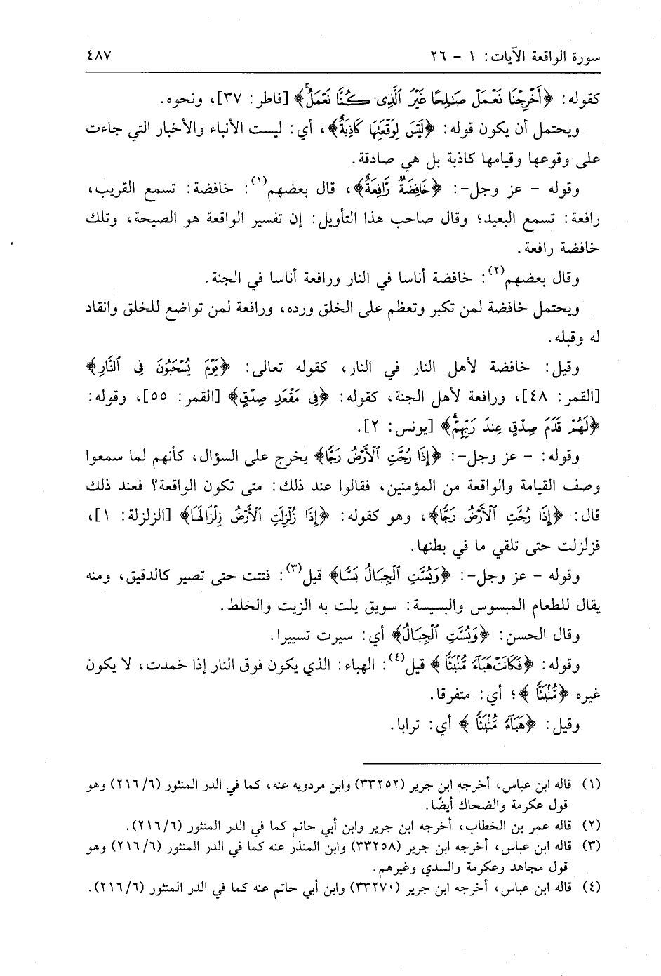 وقوله: - عَزَّ وَجَلَّ -: (إِذَا رُجَّتِ الْأَرْضُ رَجًّا (4) يخرج على السؤال، كأنهم لما سمعوا وصف القيامة والواقعة من المؤمنين، فقالوا عند ذلك: متى تكون الواقعة؟ فعند ذلك قال: (إِذَا رُجَّتِ الْأَرْضُ رَجًّا)، وهو كقوله: (إِذَا زُلْزِلَتِ الْأَرْضُ زِلْزَالَهَا)، فزلزلت حتى تلقي ما في بطنها.