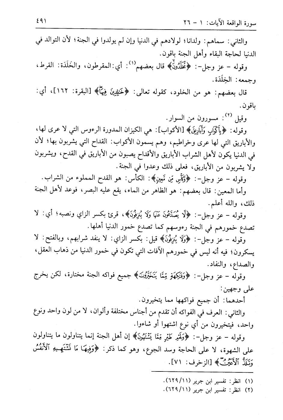 وقوله - عَزَّ وَجَلَّ -: (وَلَا يُنْزِفُونَ) قيل: بكسر الزاي: لا ينفد شرابهم، وبالفتح: لا يسكرون؛ فيه أنه ليس في خمورهم الآفات التي تكون في خمور الدنيا من ذهاب العقل، والصداع، والنفاد.