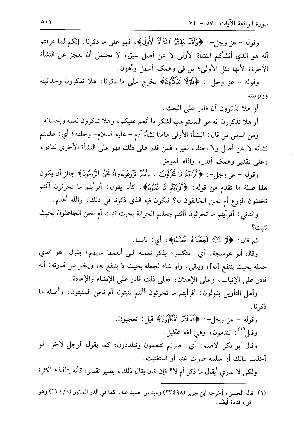 وقوله - عَزَّ وَجَلَّ -: (وَلَقَدْ عَلِمْتُمُ النَّشْأَةَ الْأُولَى ... (62) فهو على ما ذكرنا: إنكم لما عرفتم أنه هو الذي أنشأكم النشأة الأولى لا عن أصل سبق، لا يحتمل أن يعجز عن النشأة الآخرة؛ لأنها مثل الأولى؛ بل في وهمكم أسهل وأهون.