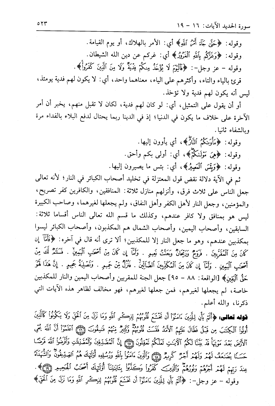وقوله - عَزَّ وَجَلَّ -: (فَالْيَوْمَ لَا يُؤْخَذُ مِنْكُمْ فِدْيَةٌ وَلَا مِنَ الَّذِينَ كَفَرُوا مَأْوَاكُمُ النَّارُ هِيَ مَوْلَاكُمْ وَبِئْسَ الْمَصِيرُ (15).