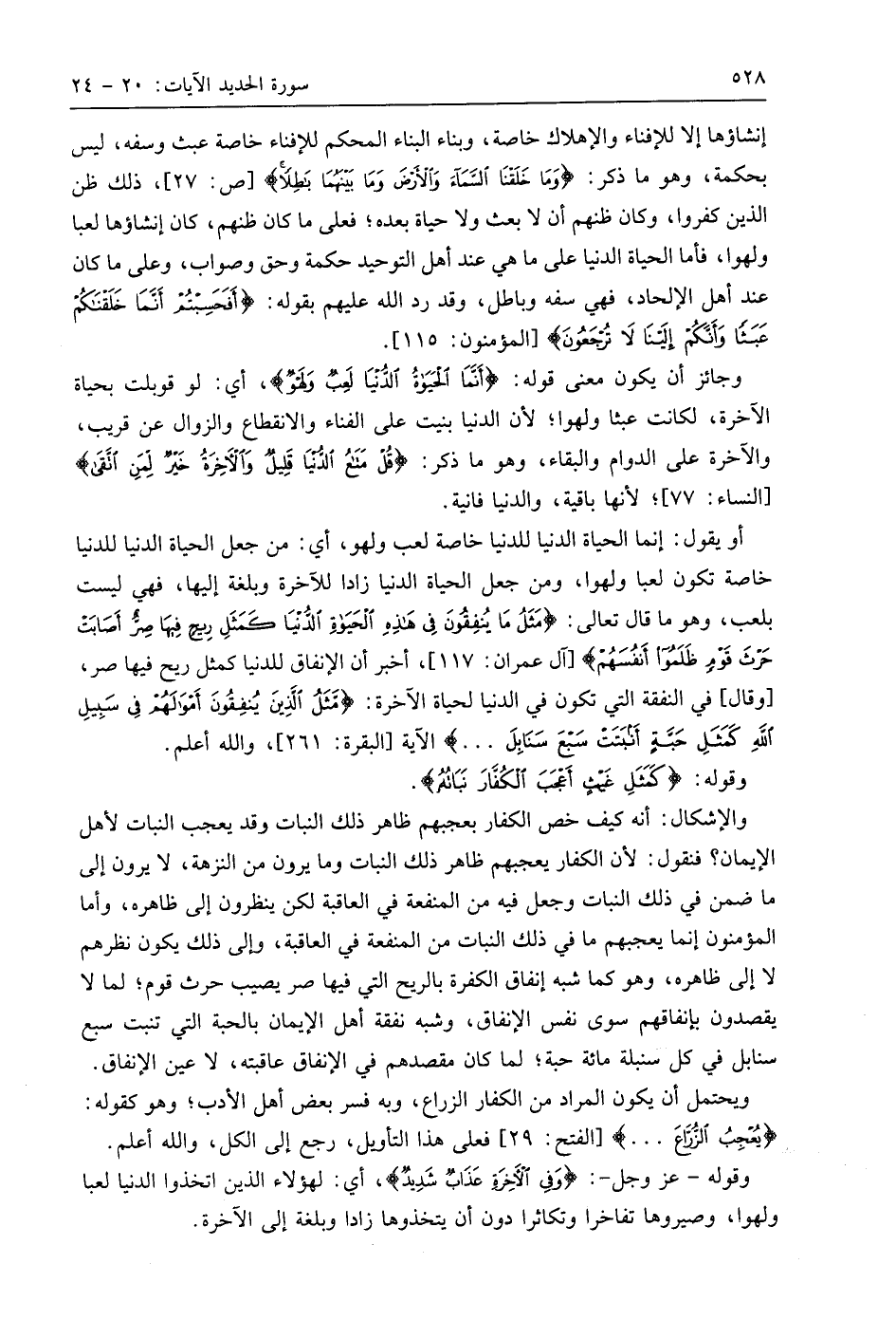 وجائز أن يكون معنى قوله: (أَنَّمَا الْحَيَاةُ الدُّنْيَا لَعِبٌ وَلَهْوٌ)، أي: لو قوبلت بحياة الآخرة، لكانت عبثا ولهوا؛ لأن الدنيا بنيت على الفناء والانقطاع والزوال عن قريب، والآخرة على الدوام والبقاء، وهو ما ذكر: (قُلْ مَتَاعُ الدُّنْيَا قَلِيلٌ وَالْآخِرَةُ خَيْرٌ لِمَنِ اتَّقَى)؛ لأنها باقية، والدنيا فانية.