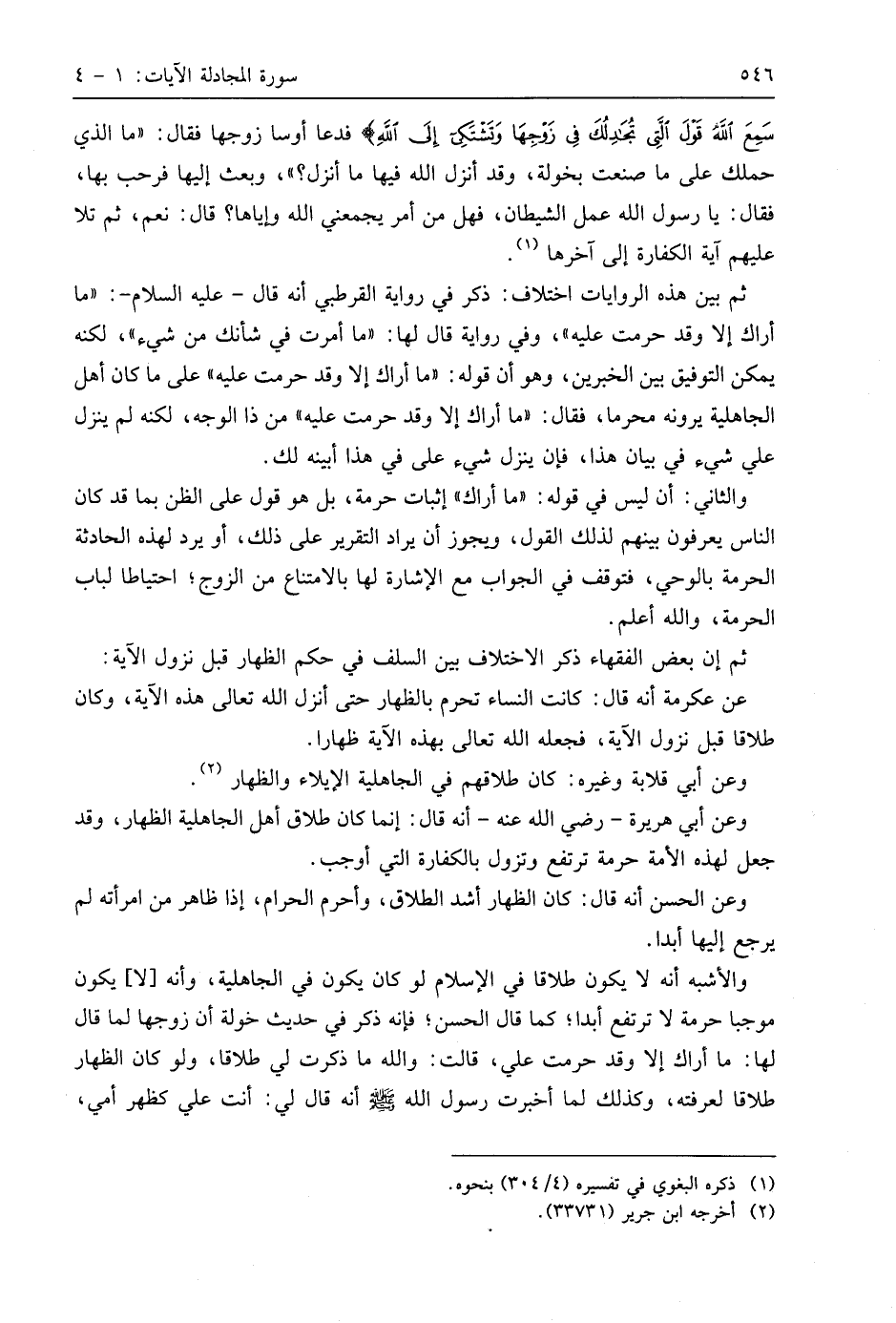 ثم إن بعض الفقهاء ذكر الاختلاف بين السلف في حكم الظهار قبل نزول الآية: