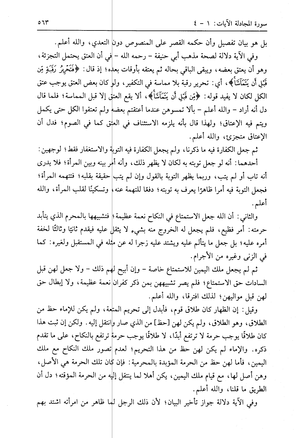 وفي الآية دلالة جواز تأخير البيان؛ لأن ذلك الرجل ظاهر من امرأته اشتد بهم