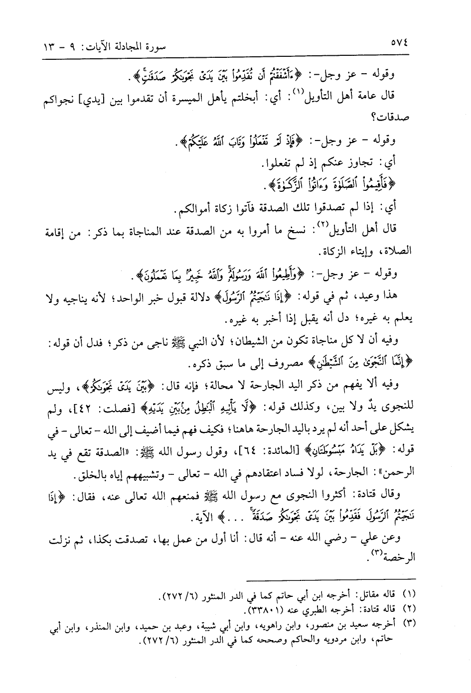 وقوله - عَزَّ وَجَلَّ -: (أَأَشْفَقْتُمْ أَنْ تُقَدِّمُوا بَيْنَ يَدَيْ نَجْوَاكُمْ صَدَقَاتٍ فَإِذْ لَمْ تَفْعَلُوا وَتَابَ اللَّهُ عَلَيْكُمْ فَأَقِيمُوا الصَّلَاةَ وَآتُوا الزَّكَاةَ وَأَطِيعُوا اللَّهَ وَرَسُولَهُ وَاللَّهُ خَبِيرٌ بِمَا تَعْمَلُونَ (13).