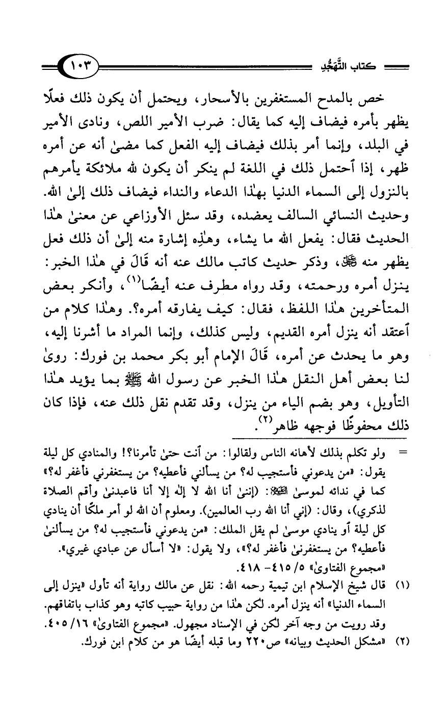 (¬1) قال شيخ الإسلام ابن تيمية رحمه الله: نقل عن مالك رواية أنه تأول "ينزل إلى