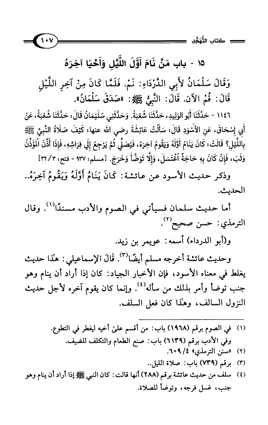 15 - باب مَنْ نَامَ أَوَّلَ اللَّيْلِ وَأَحْيَا آخِرَهُ