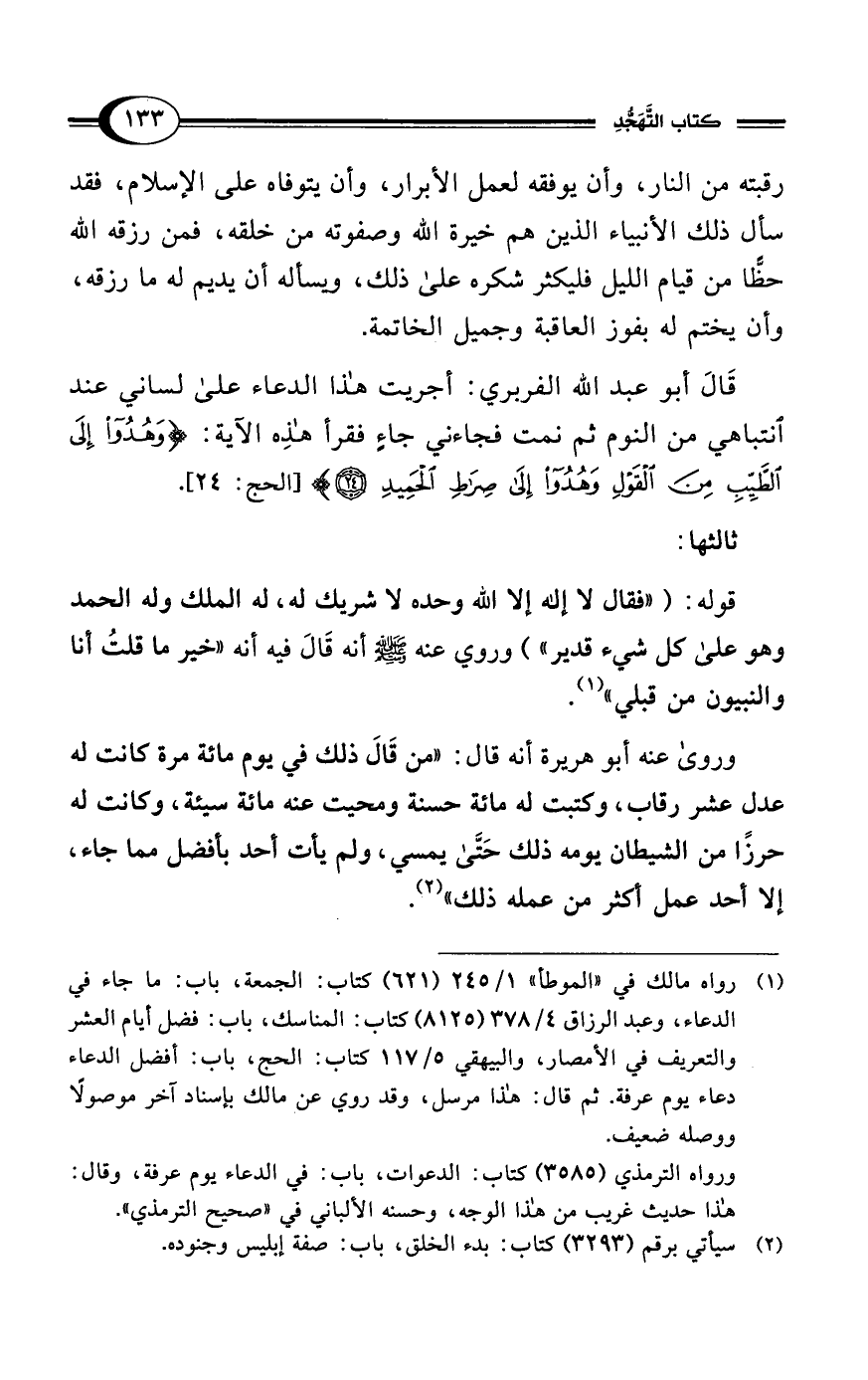 (¬1) رواه مالك في "الموطأ" 1/ 245 (621) كتاب: الجمعة، باب: ما جاء في الدعاء، وعبد الرزاق 4/ 378 (8125) كتاب: المناسك، باب: فضل أيام العشر والتعريف في الأمصار، والبيهقي 5/ 117 كتاب: الحج، باب: أفضل الدعاء دعاء يوم عرفة. ثم قال: هذا مرسل، وقد روي عن مالك بإسناد آخر موصولًا ووصله ضعيف.