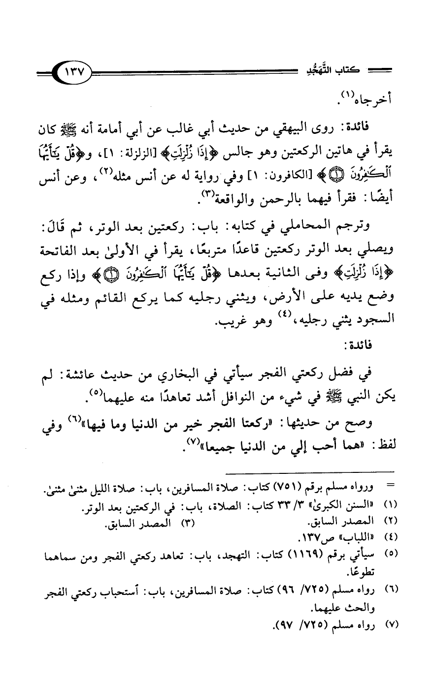 (¬6) رواه مسلم (725/ 96) كتاب: صلاة المسافرين، باب: استحباب ركعتي الفجر والحث عليهما.