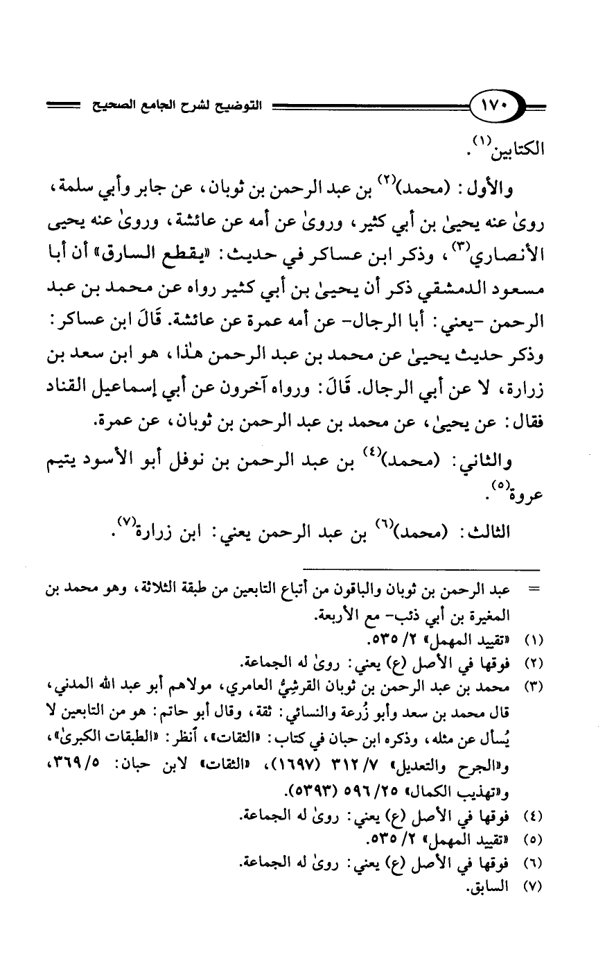 = عبد الرحمن بن ثوبان والباقون من اتباع التابعين من طبقة الثلاثة، وهو محمد بن المغيرة بن أبي ذئب- مع الأربعة.
