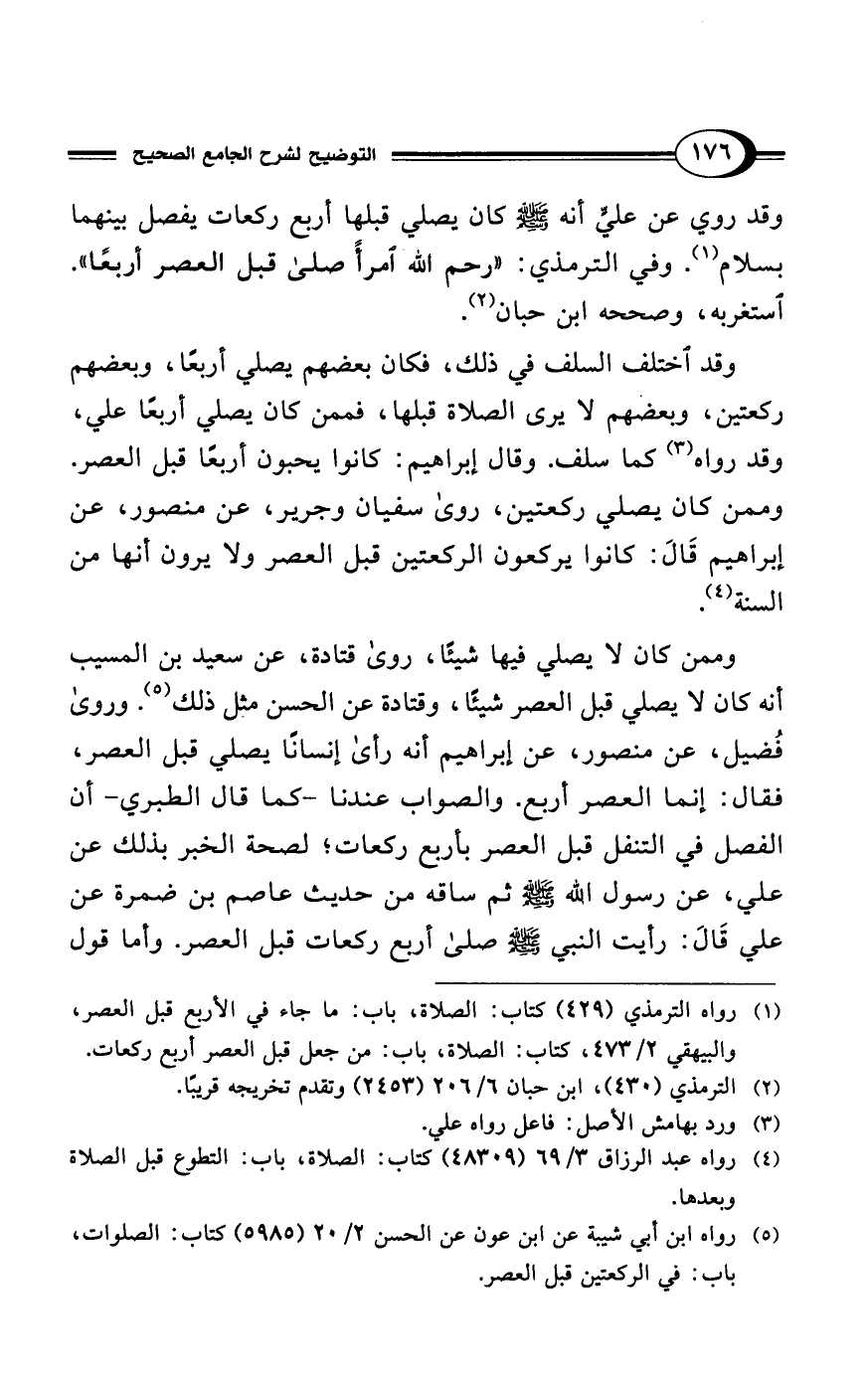 (¬5) رواه ابن أبي شيبة عن ابن عون عن الحسن 2/ 20 (5985) كتاب: الصلوات، باب: في الركعتين قبل العصر.