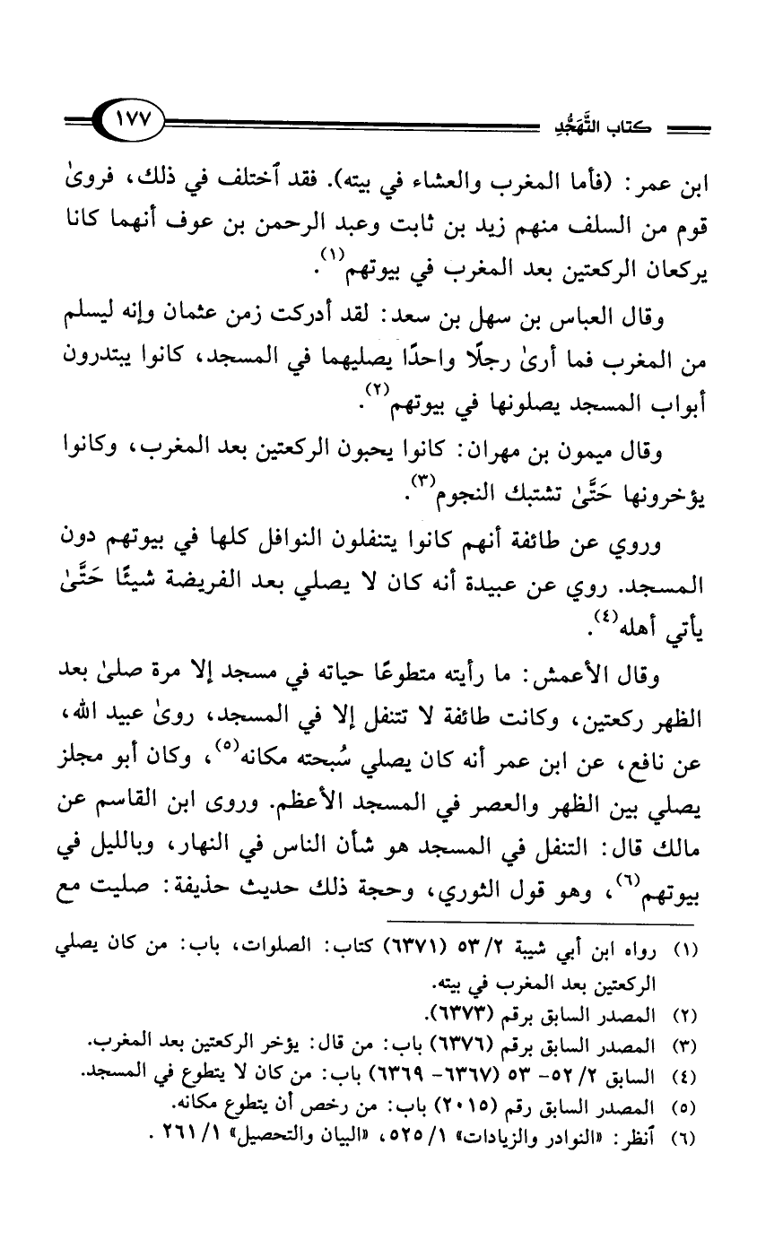 (¬4) السابق 2/ 52 - 53 (6367 - 6369) باب: من كان لا يتطوع في المسجد.