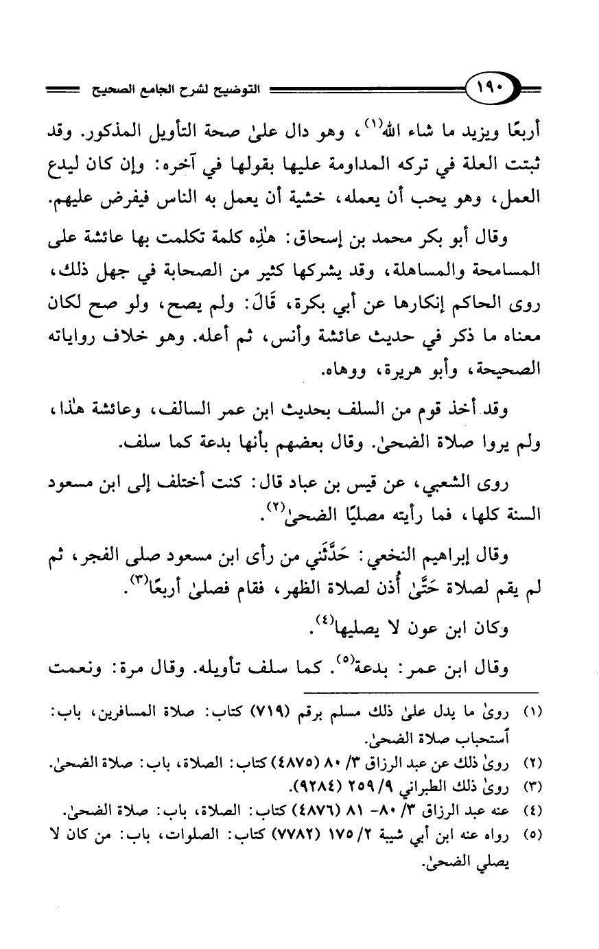 (¬5) رواه عنه ابن أبي شيبة 2/ 175 (7782) كتاب: الصلوات، باب: من كان لا يصلي الضحى.