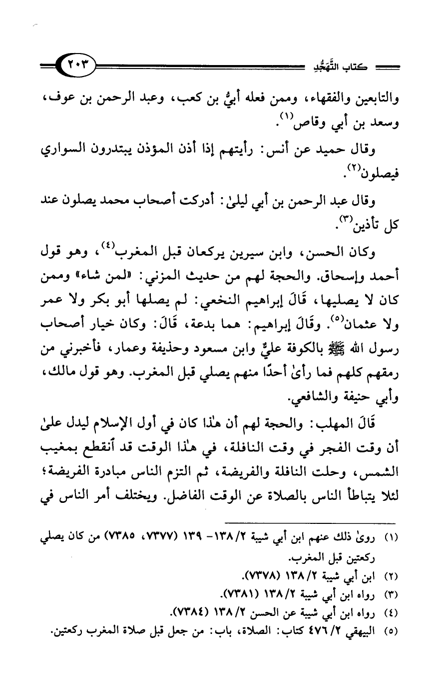 (¬1) روى ذلك عنهم ابن أبي شيبة 2/ 138 - 139 (7377، 7385) من كان يصلي ركعتين قبل المغرب.