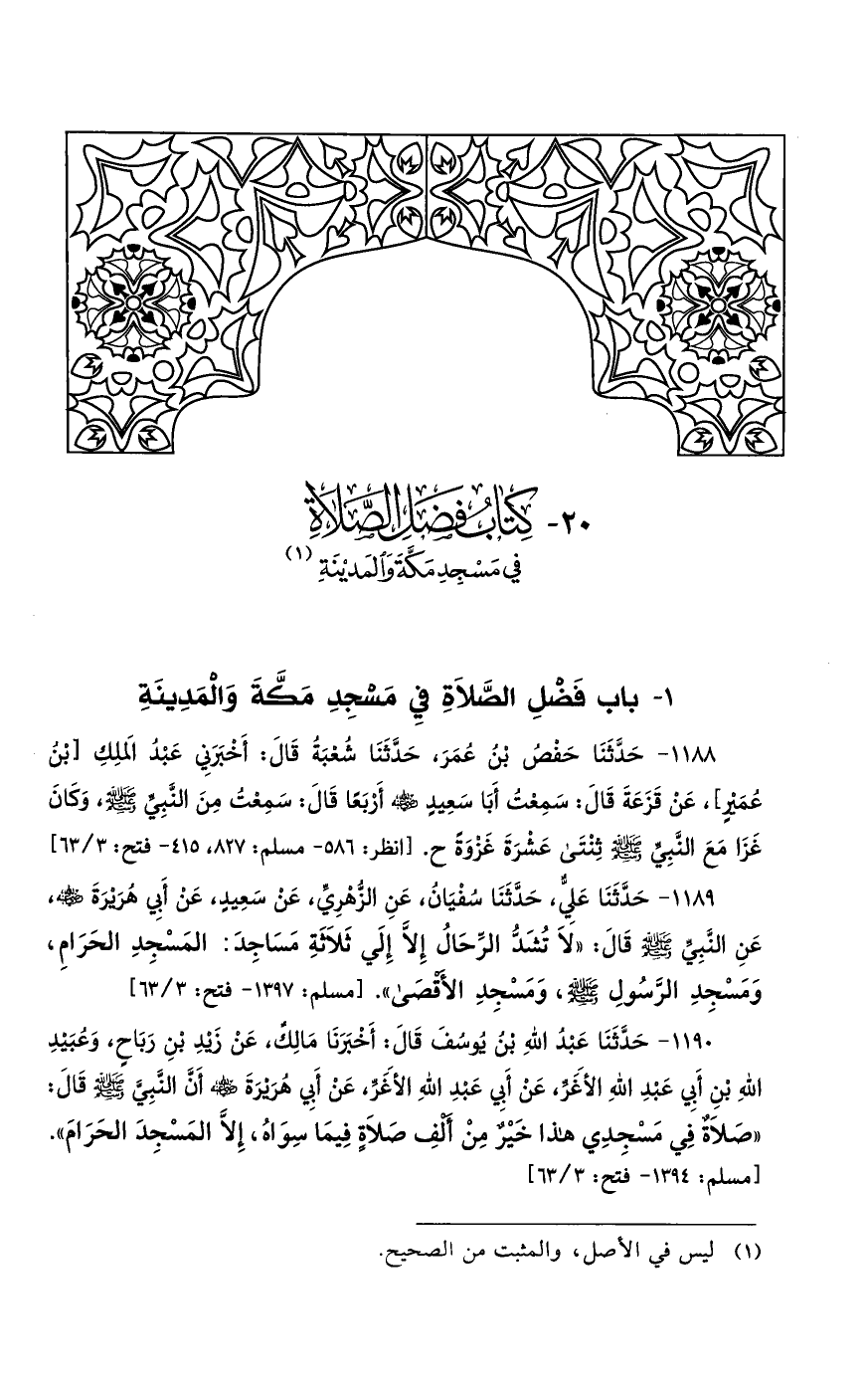 20 - كتاب فضل الصلاة في مَسْجِدِ مَكَّةَ وَالمدْينَةِ (¬1)
