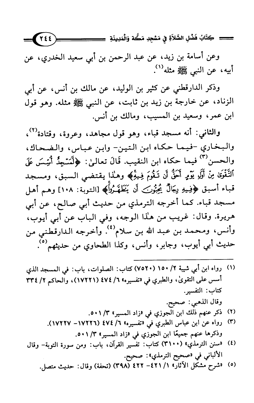 (¬1) رواه ابن أبي شيبة 2/ 150 (7520) كتاب: الصلوات، باب: في المسجد الذي أسس على التقوى، والطبري في "تفسيره" 6/ 474 (17221)، والحاكم 2/ 334 كتاب: التفسير.