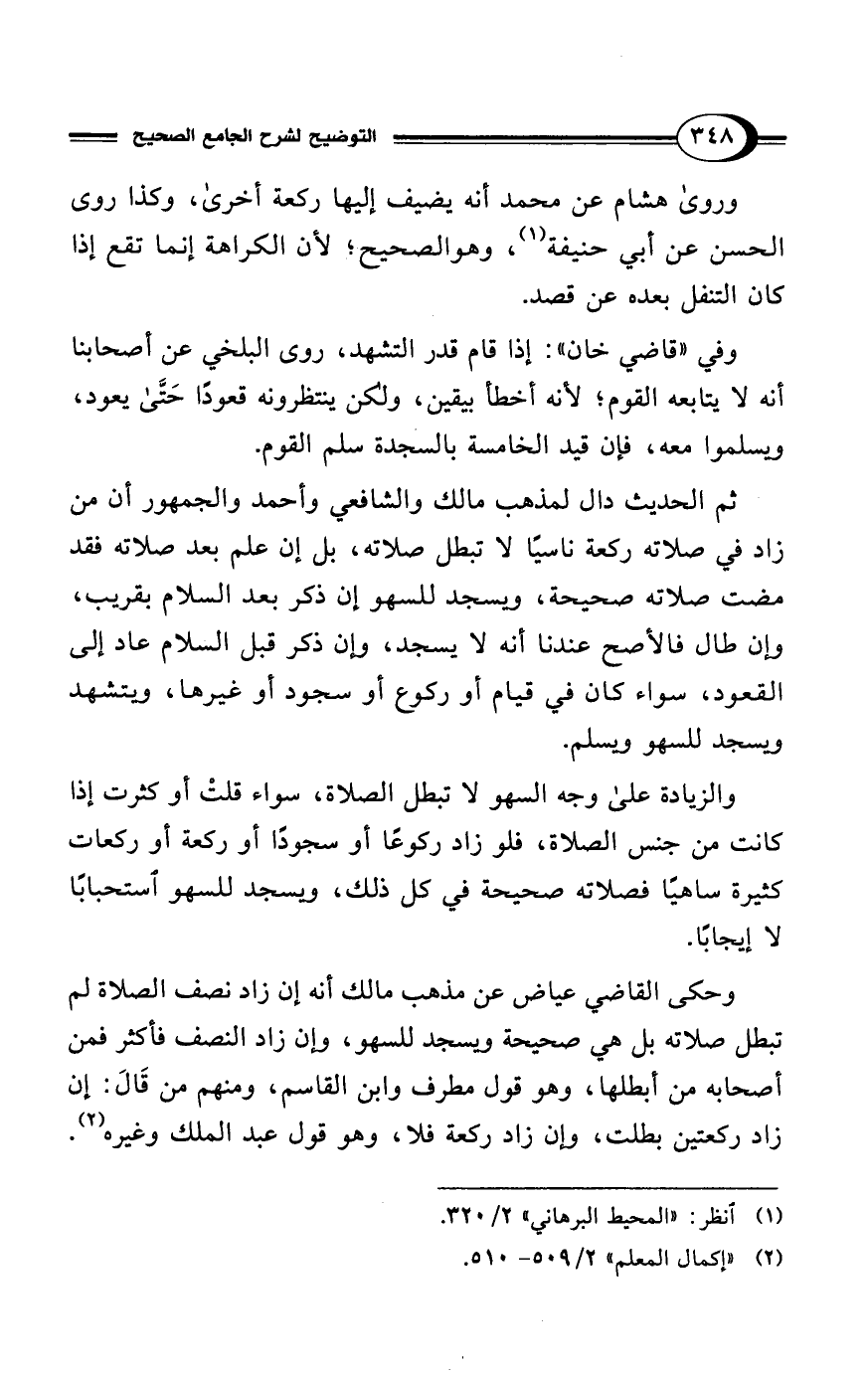 وحكى القاضي عياض عن مذهب مالك أنه إن زاد نصف الصلاة لم تبطل صلاته بل هي صحيحة ويسجد للسهو، وإن زاد النصف فأكثر فمن أصحابه من أبطلها، وهو قول مطرف وابن القاسم، ومنهم من قَالَ: إن زاد ركعتين بطلت، وإن زاد ركعة فلا، وهو قول عبد الملك وغيره (¬2).