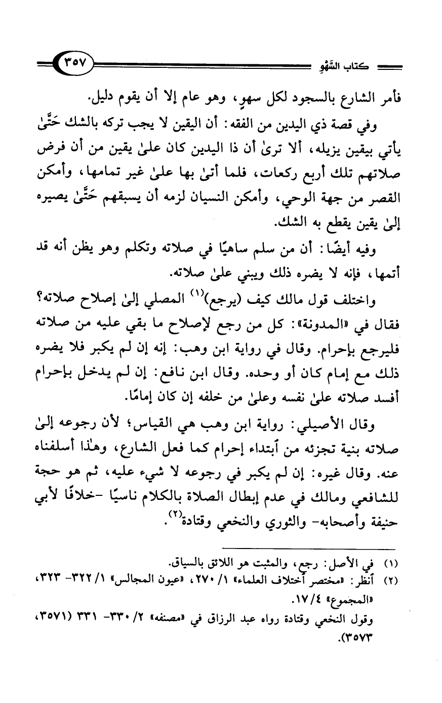 (¬2) انظر: "مختصر اختلاف العلماء" 1/ 270، "عيون المجالس" 1/ 322 - 323، "المجموع" 4/ 17.