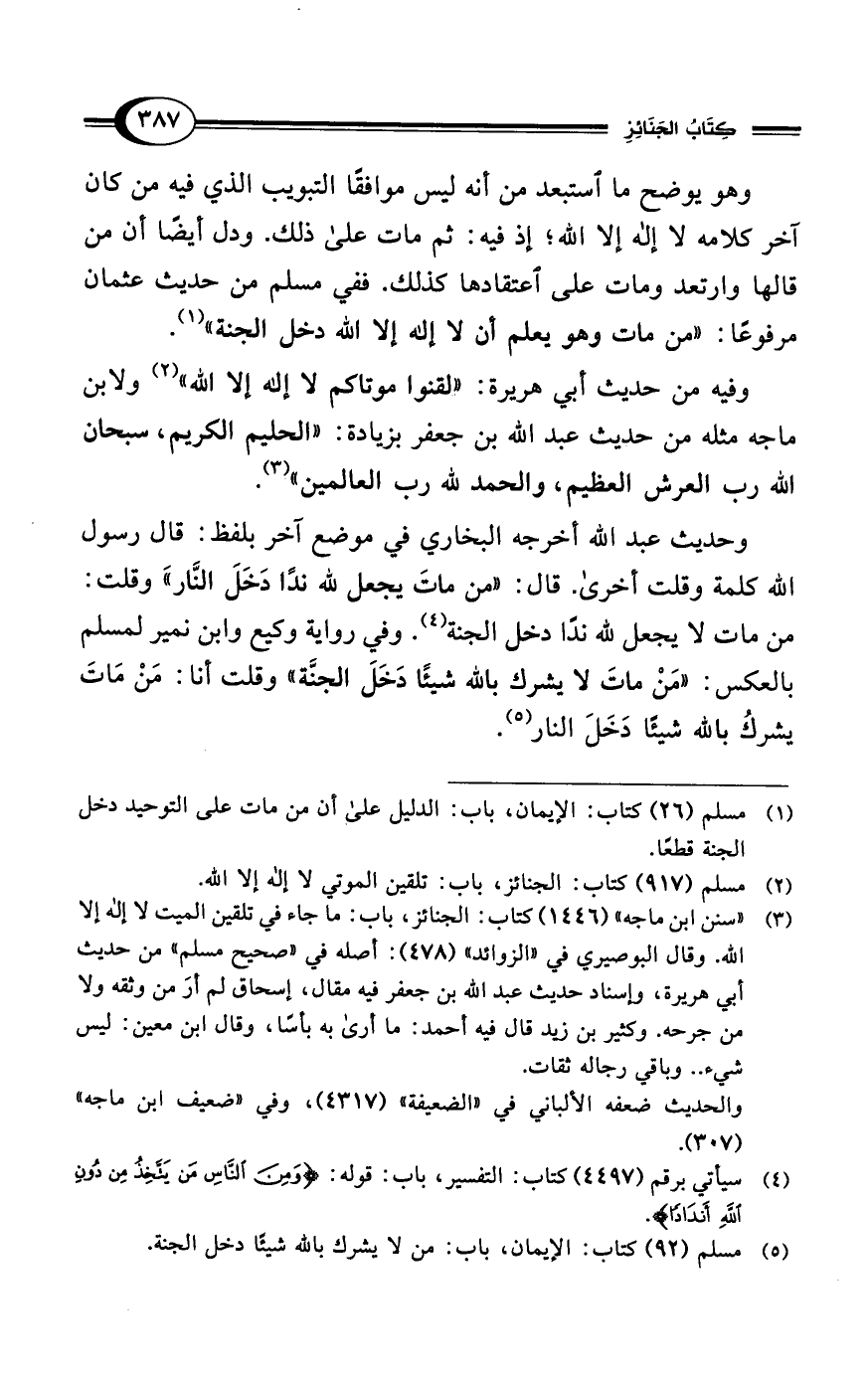 (¬5) مسلم (92) كتاب: الإيمان، باب: من لا يشرك بالله شيئًا دخل الجنة.
