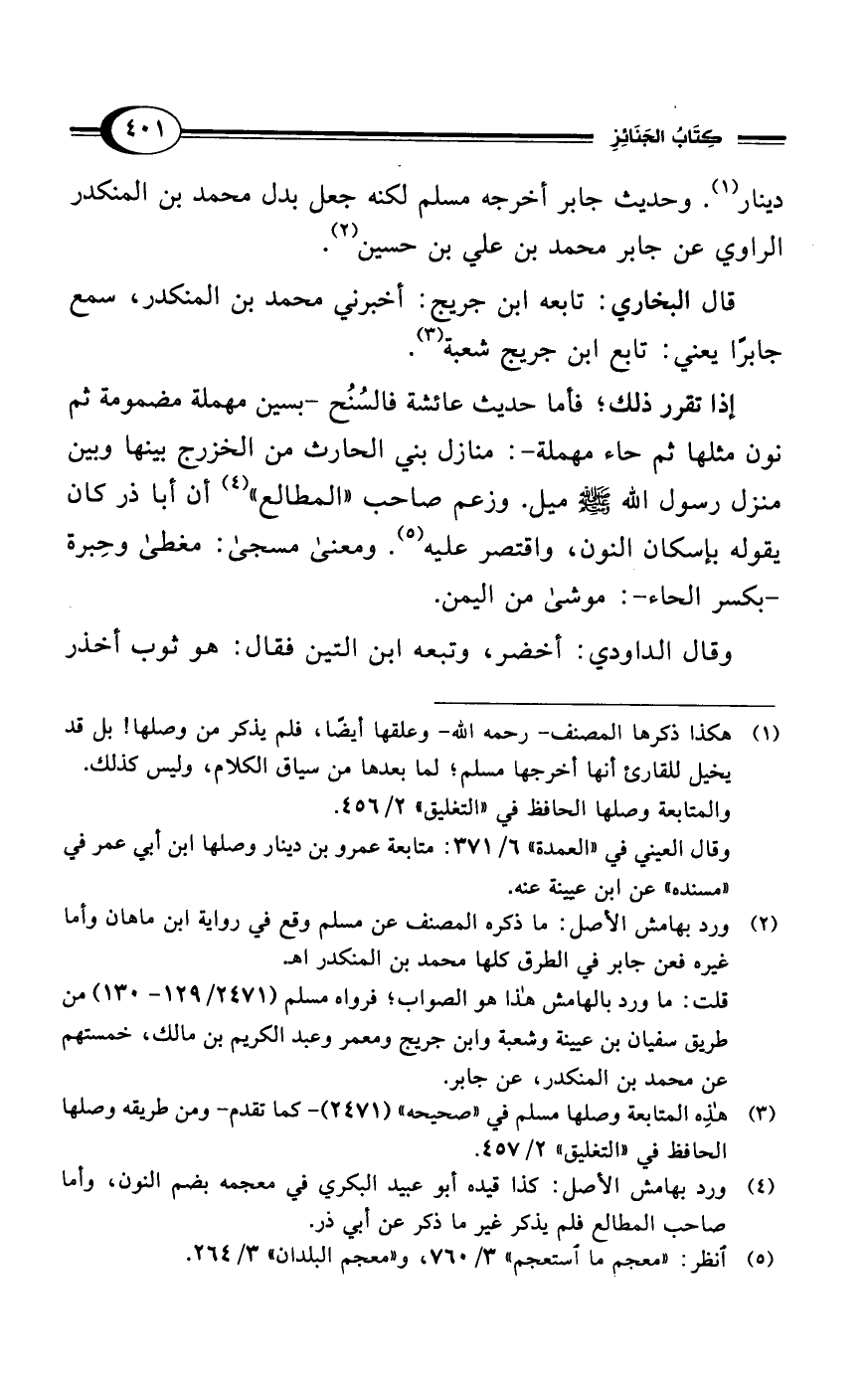 قلت: ما ورد بالهامش هذا هو الصواب؛ فرواه مسلم (2471/ 129 - 130) من طريق سفيان بن عيينة وشعبة وابن جريج ومعمر وعبد الكريم بن مالك، خمستهم عن محمد بن المنكدر، عن جابر.