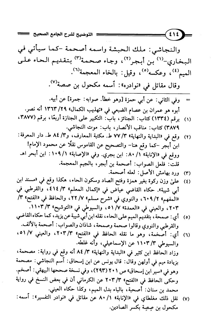 وزاد الحافظ ابن كثير في "البداية والنهاية" 3/ 84 أنه وقع في رواية: مصحمة، بزيادة ميم في أولهن وقال: قال يونس عن ابن إسحاق: اسم النجاشي: مصحمة وهو في "سير ابن إسحاق" ص 201 (293)، وفي نسخة صححها البيهقي: أصخم. وحكى الحافظ في "الفتح" 3/ 203 عن الكرماني أن في بعض النسخ في رواية محمد بن سنان: أصحبة، بالباء بدل الميم، وكذا حكاه العيني.