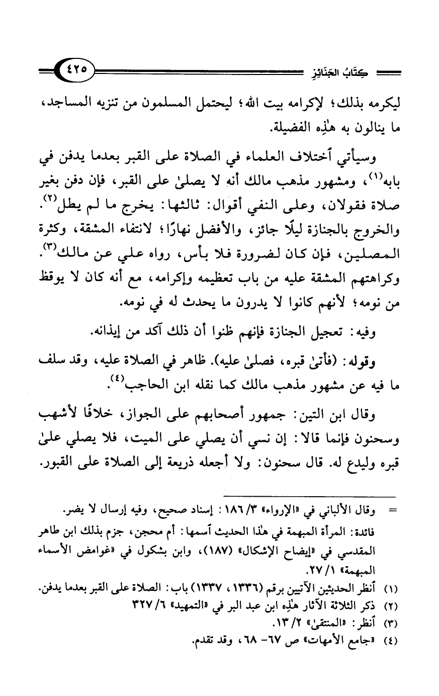 وقال ابن التين: جمهور أصحابهم على الجواز، خلافًا لأشهب وسحنون فإنما قالا: إن نسي أن يصلي على الميت، فلا يصلي على قبره وليدع له. قال سحنون: ولا أجعله ذريعة إلى الصلاة على القبور.