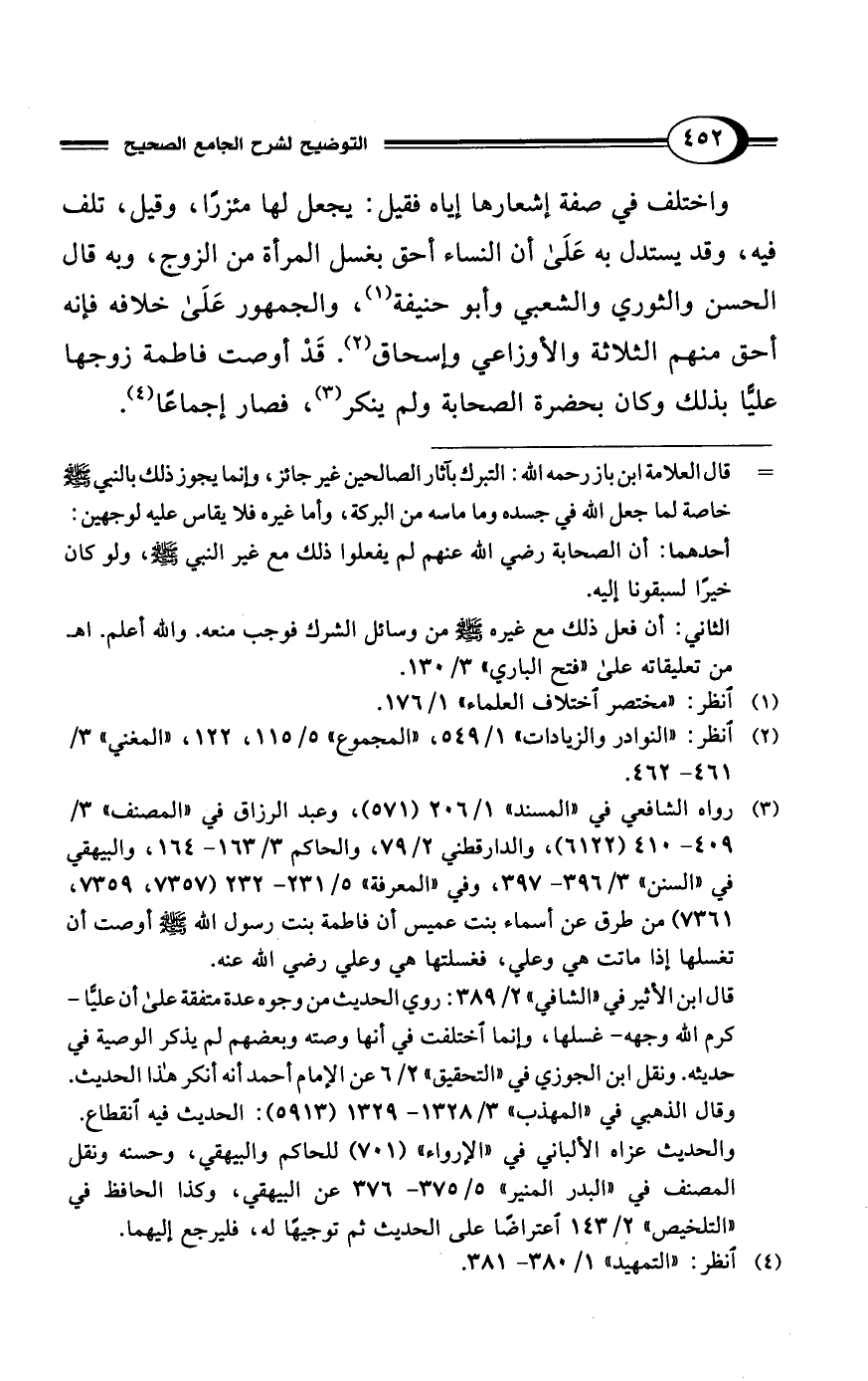 (¬2) انظر: "النوادر والزيادات" 1/ 549، "المجموع" 5/ 115، 122، "المغني" 3/ 461 - 462.