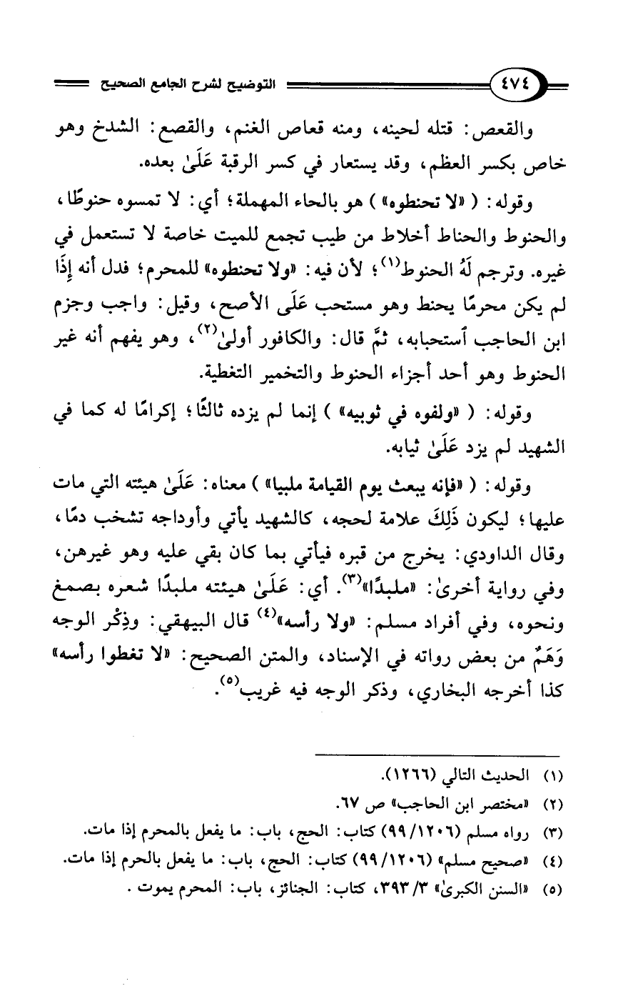 (¬5) "السنن الكبرى" 3/ 393، كتاب: الجنائز، باب: المحرم يموت.