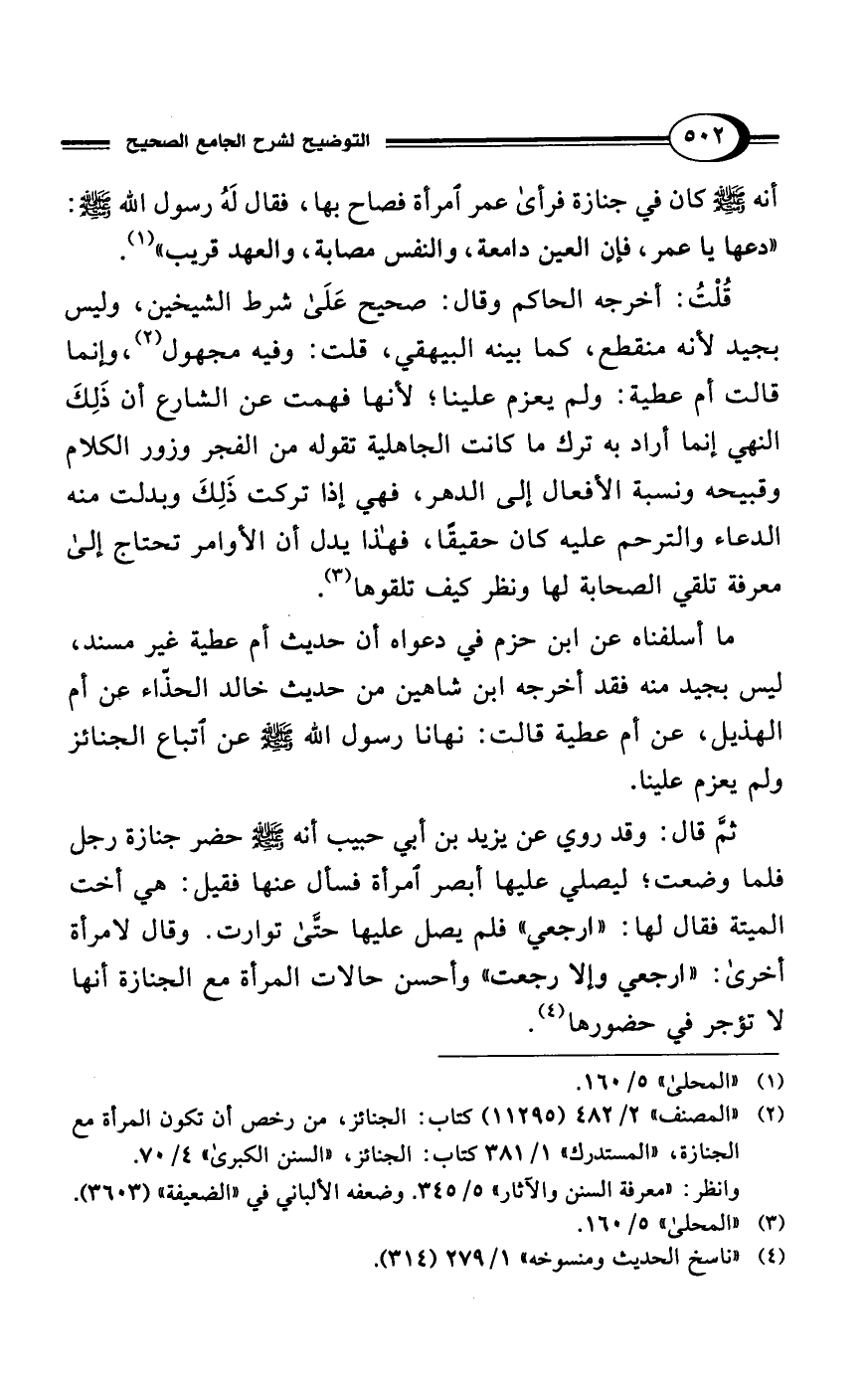 (¬2) "المصنف" 2/ 482 (11295) كتاب: الجنائز، من رخص أن تكون المرأة مع الجنازة، "المستدرك" 1/ 381 كتاب: الجنائز، "السنن الكبرى" 4/ 70.