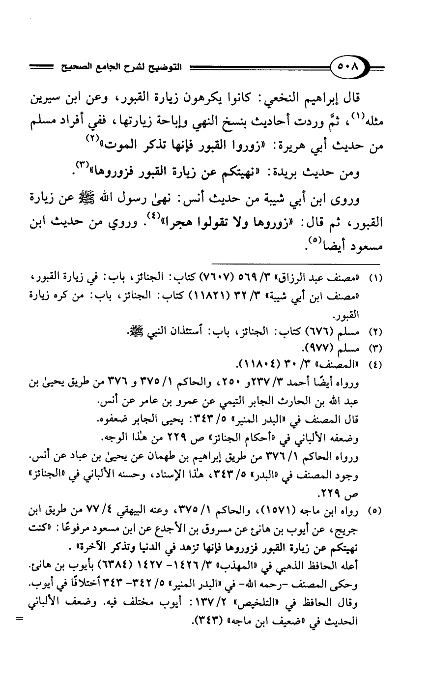 (¬1) "مصنف عبد الرزاق" 3/ 569 (7607) كتاب: الجنائز، باب: في زيارة القبور، "مصنف ابن أبي شيبة" 3/ 32 (11821) كتاب: الجنائز، باب: من كره زيارة القبور.