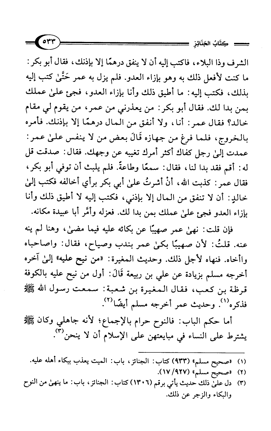 (¬1) "صحيح مسلم" (933) كتاب: الجنائز، باب: الميت يعذب ببكاء أهله عليه.