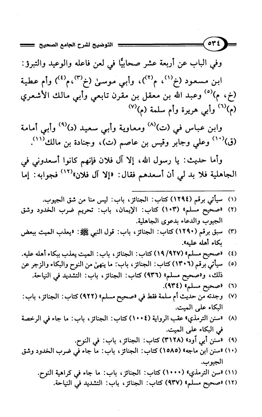 (¬12) "صحيح مسلم" (937) كتاب: الجنائز، باب: التشديد في النياحة.