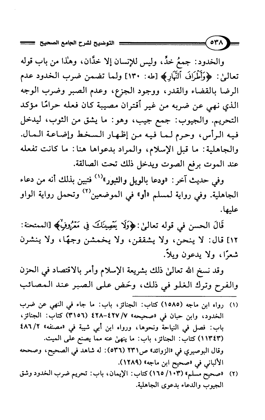 (¬2) "صحيح مسلم" (103/ 165) كتاب: الإيمان، باب: تحريم ضرب الخدود وشق الجيوب والدعاء بدعوى الجاهلية.