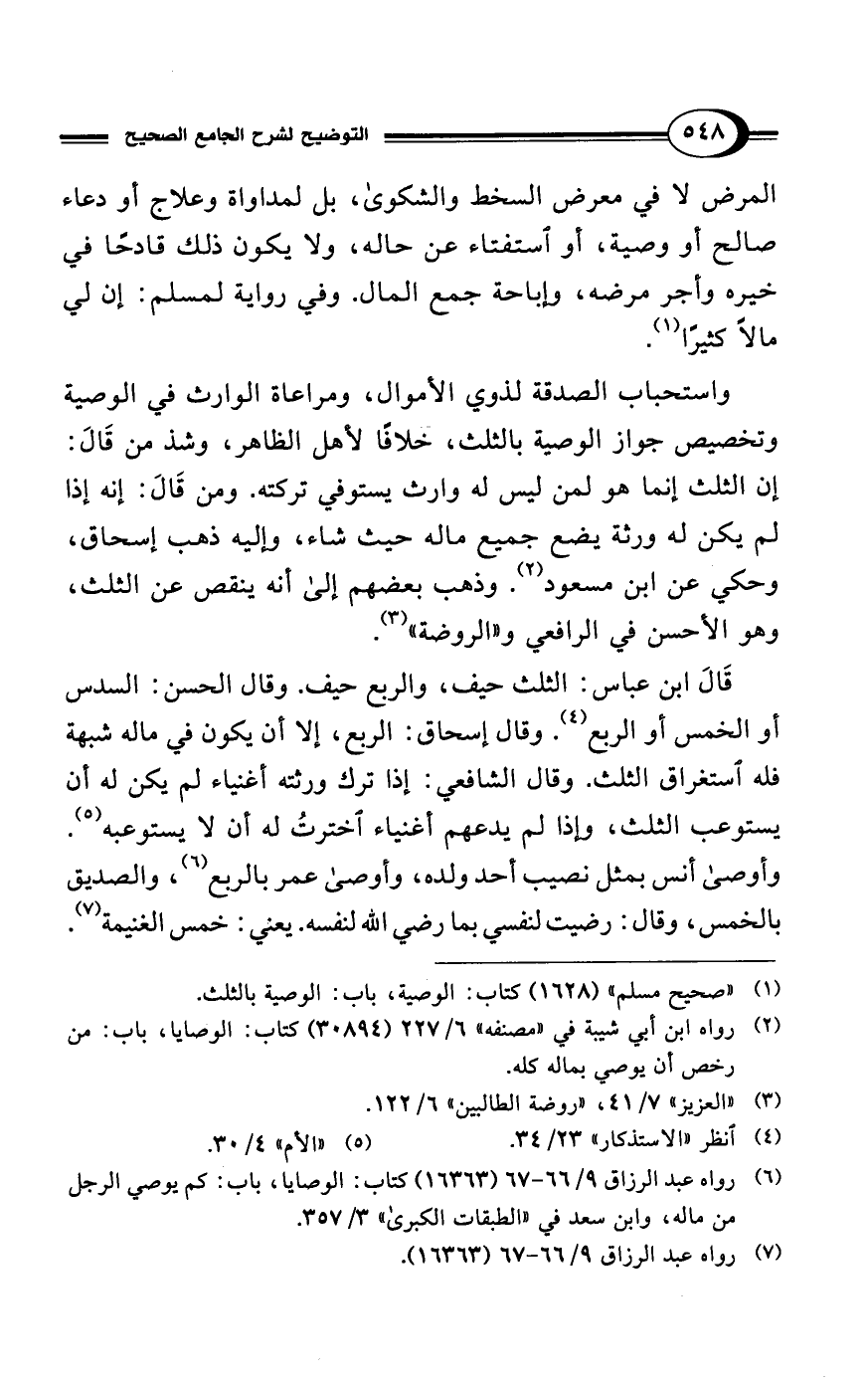 (¬1) "صحيح مسلم" (1628) كتاب: الوصية، باب: الوصية بالثلث.