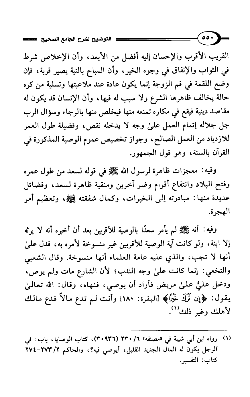 (¬1) رواه ابن أبي شيبة في "مصنفه" 6/ 230 (30936)، كتاب الوصايا، باب: في الرجل يكون له المال الجديد القليل، أيوصي فيه؟، والحاكم 2/ 273 - 274 كتاب: التفسير.