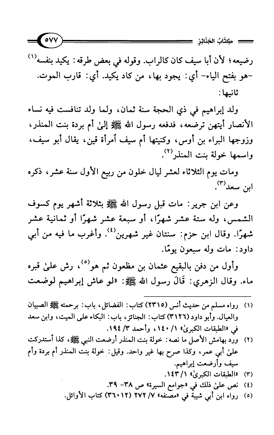 وأول من دفن بالبقيع عثمان بن مظعون ثم هو (¬5)، رش على قبره ماء. وقال الزهري: قَالَ رسول الله - صلى الله عليه وسلم -: "لو عاش إبراهيم لوضعت