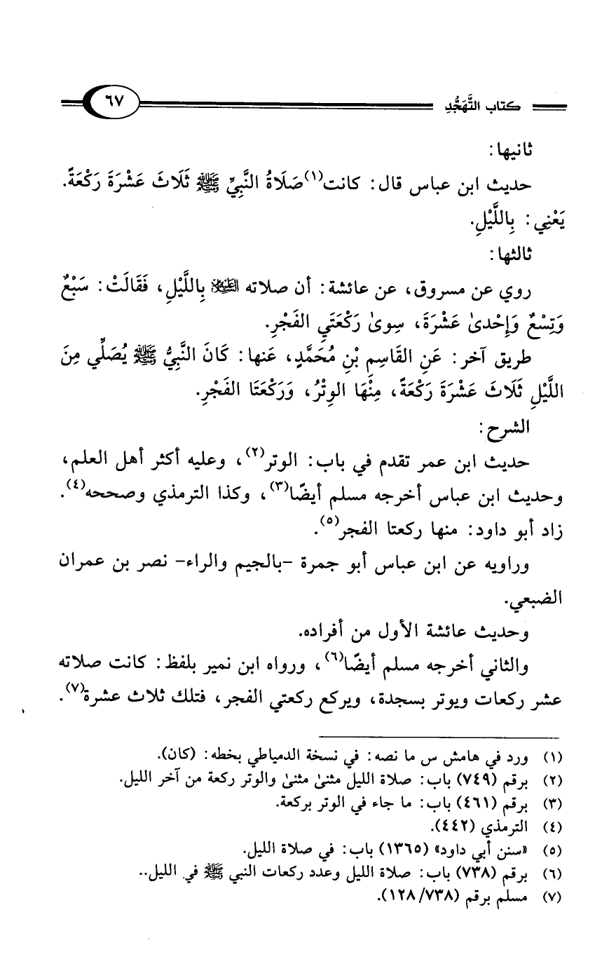 (¬6) برقم (738) باب: صلاة الليل وعدد ركعات النبي - صلى الله عليه وسلم - في الليل ..