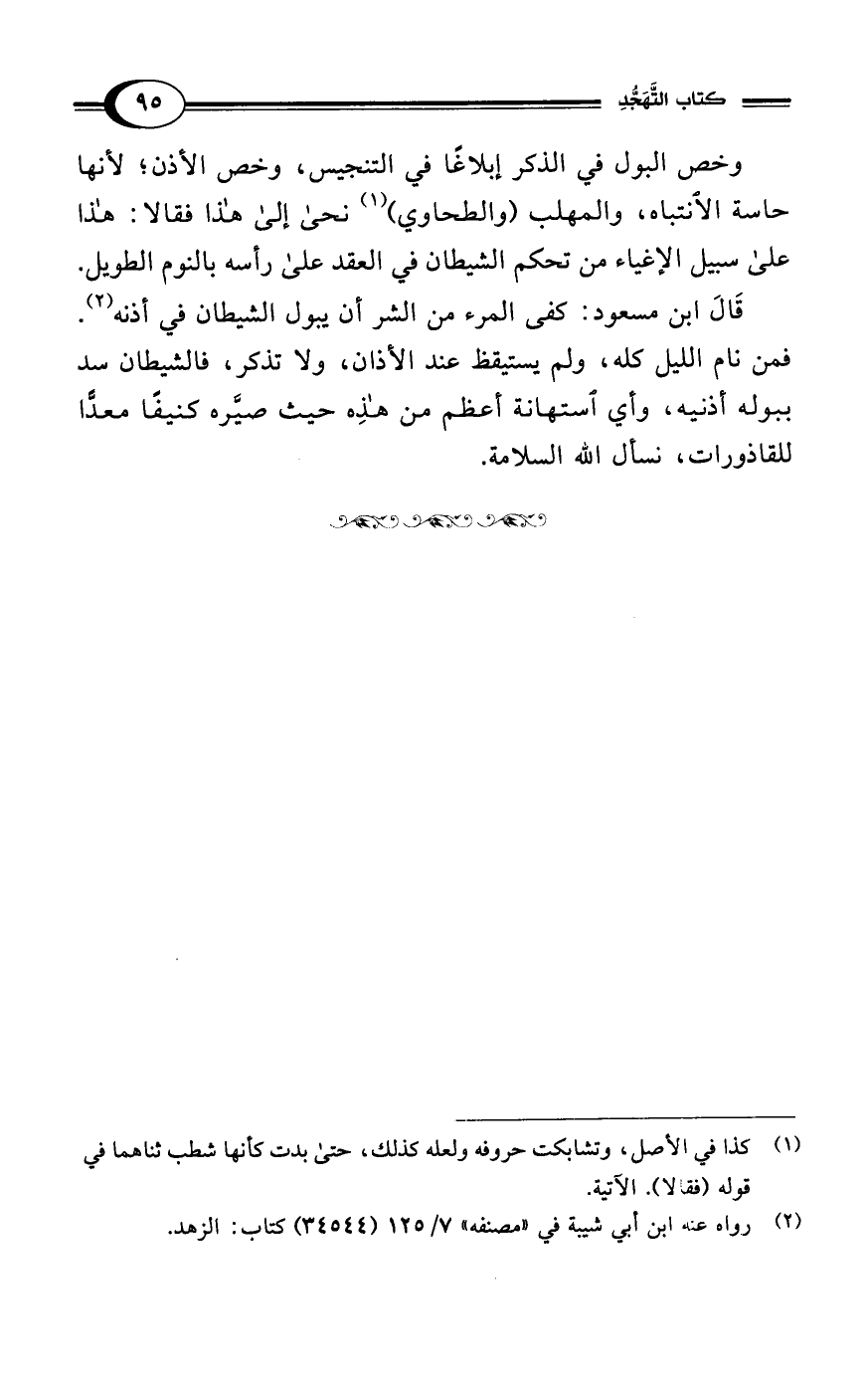 قَالَ ابن مسعود: كفي المرء من الشر أن يبول الشيطان في أذنه (¬2).