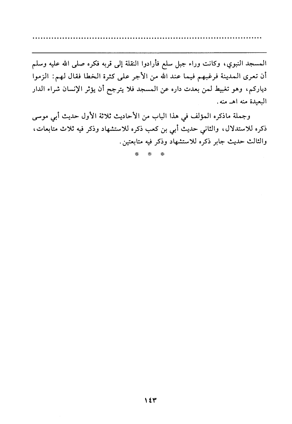 المسجد النبوي، وكانت وراء جبل سلع فأرادوا النقلة إلى قربه فكره صلى الله عليه وسلم أن تعرى المدينة فرغبهم فيما عند الله من الأجر على كثرة الخطا فقال لهم: الزموا دياركم، وهو تغبيط لمن بعدت داره عن المسجد فلا يترجح أن يؤثر الإنسان شراء الدار البعيدة منه اهـ منه.