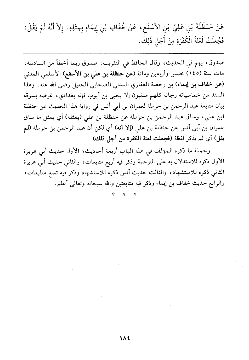 عَنْ حَنْظَلَةَ بْنِ عَلِيِّ بْنِ الأَسْقَعِ، عَنْ خُفَافِ بْنِ إِيمَاءٍ بِمِثْلِهِ. إِلّا أَنَّهُ لَمْ يَقُلْ: فَجُعِلَتْ لَعْنَةُ الْكَفَرَةِ مِنْ أَجْلِ ذَلِكَ