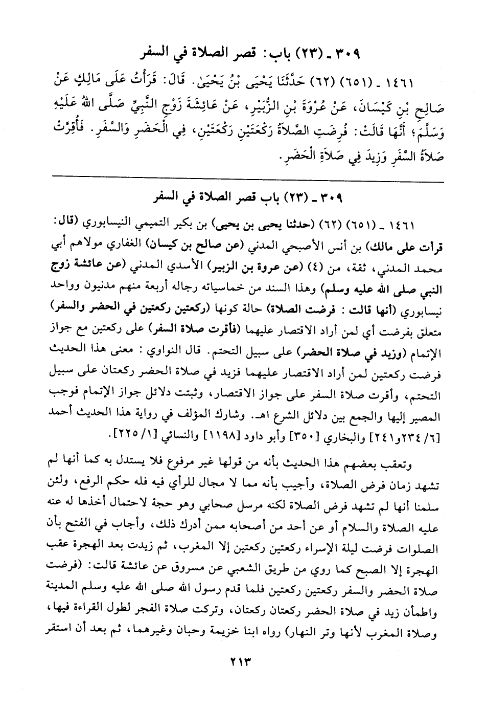 ٣٠٩ - (٢٣) باب قصر الصلاة في السفر