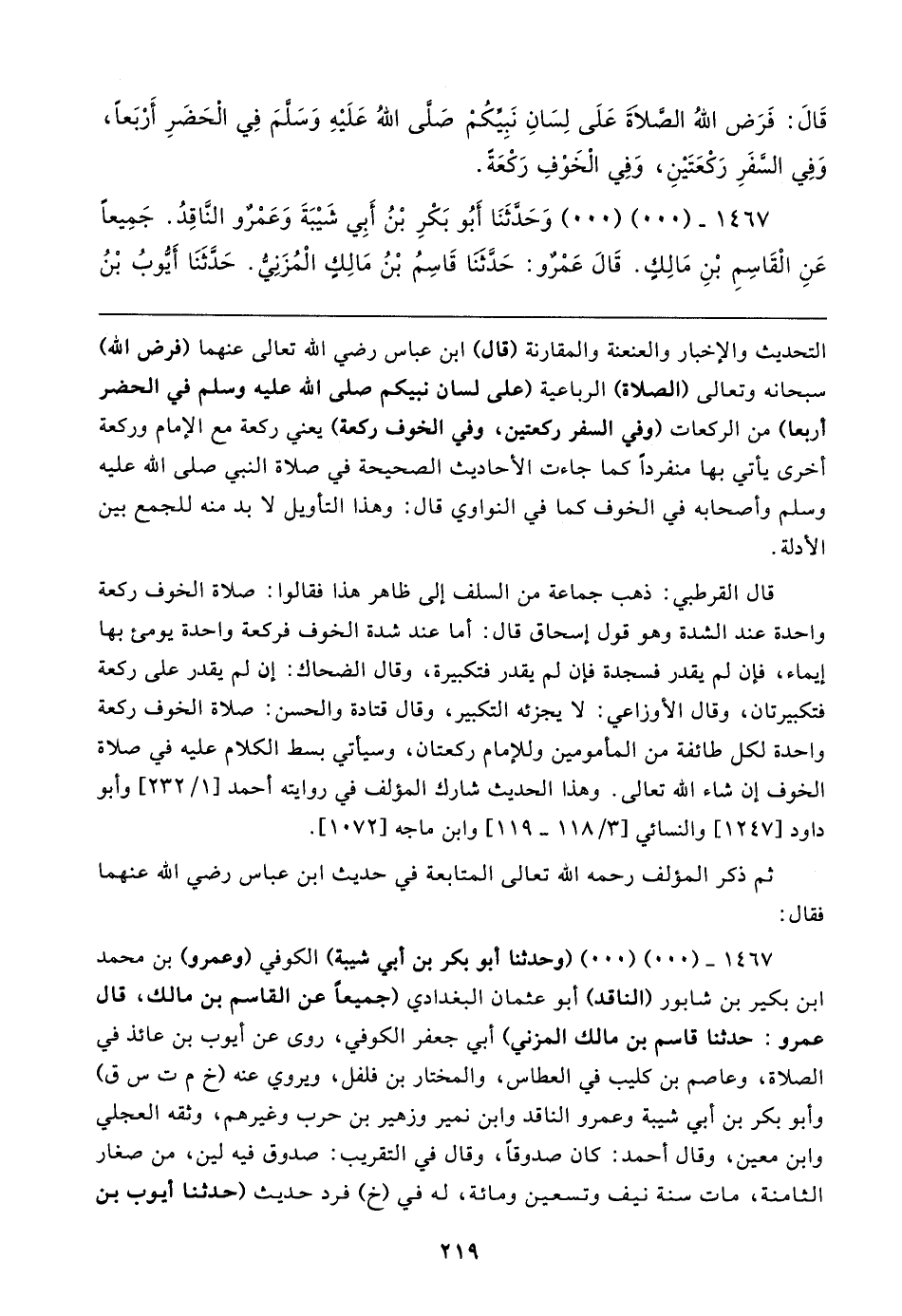 ١٤٦٧ - (٠٠) (٠٠) (وحدثنا أبو بكر بن أبي شيبة) الكوفي (وعمرو) بن محمد بن بكير بن شابور (الناقد) أبو عثمان البغدادي (جميعًا عن القاسم بن مالك، قال عمرو: حدثنا قاسم بن مالك المزني) أبي جعفر الكوفي، روى عن أيوب بن عائذ في الصلاة، وعاصم بن كليب في العطاس، والمختار بن فلفل، ويروي عنه (خ م ت س ق) وأبو بكر بن أبي شيبة وعمرو الناقد وابن نمير وزهير بن حرب وغيرهم، وثقه العجلي وابن معين، وقال أحمد: كان صدوقًا، وقال في التقريب: صدوق فيه لين، من صغار الثامنة، مات سنة نيف وتسعين ومائة، له في (خ) فرد حديث (حدثنا أيوب بن