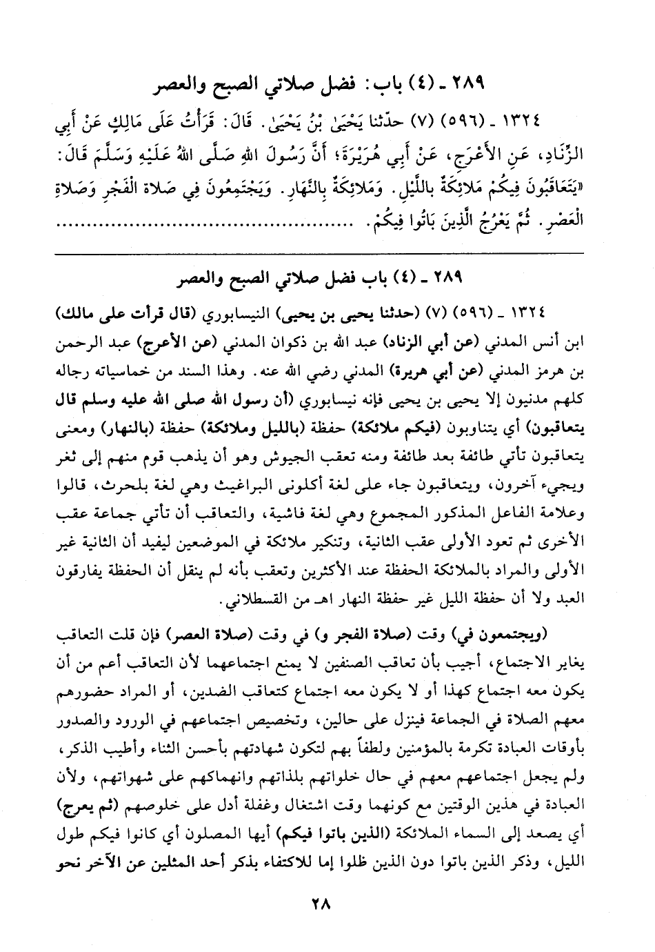 ٢٨٩ - (٤) باب فضل صلاتي الصبح والعصر