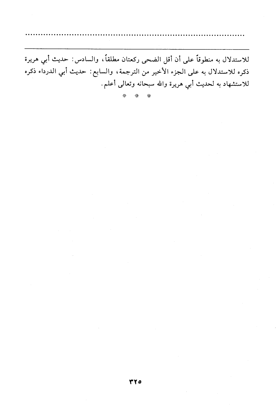 للاستدلال به منطوقًا على أن أقل الضحى ركعتان مطلقًا، والسادس: حديث أبي هريرة ذكره للاستدلال به على الجزء الأخير من الترجمة، والسابع: حديث أبي الدرداء ذكره للاستشهاد به لحديث أبي هريرة والله سبحانه وتعالى أعلم.