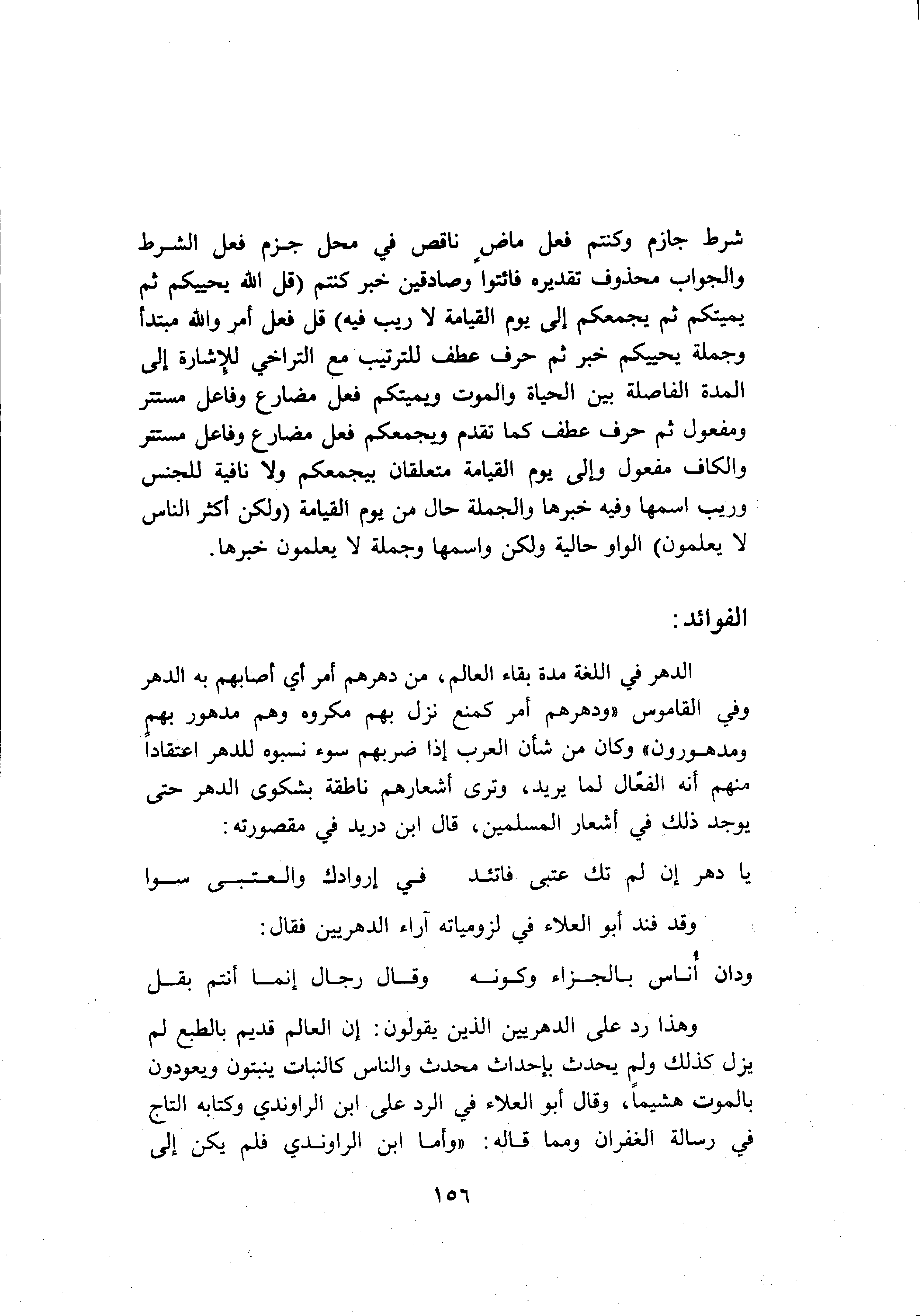 وقد فند أبو العلاء في لزومياته آراء الدهريين فقال:
