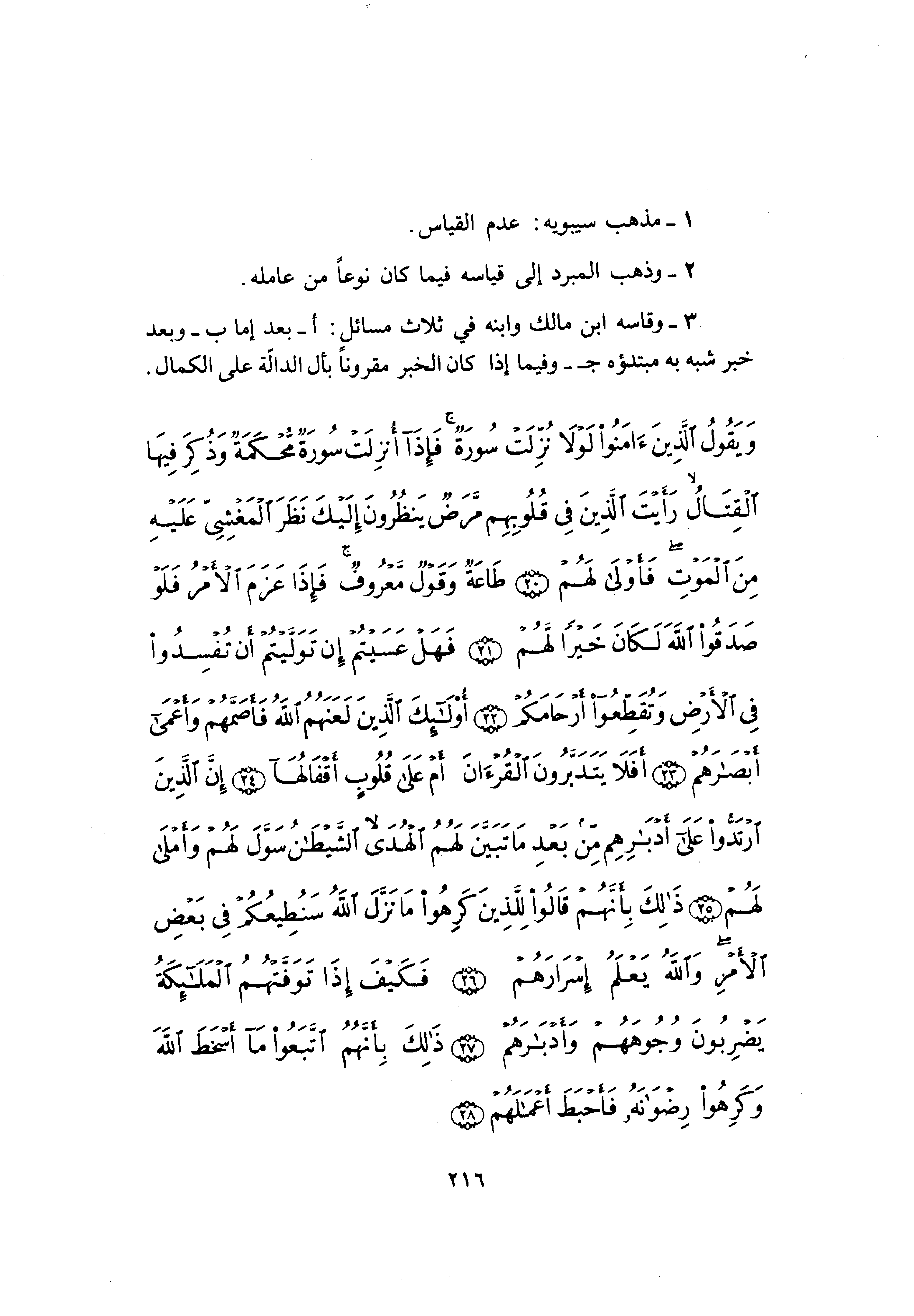 وَيَقُولُ الَّذِينَ آمَنُوا لَوْلا نُزِّلَتْ سُورَةٌ فَإِذا أُنْزِلَتْ سُورَةٌ مُحْكَمَةٌ وَذُكِرَ فِيهَا الْقِتالُ رَأَيْتَ الَّذِينَ فِي قُلُوبِهِمْ مَرَضٌ يَنْظُرُونَ إِلَيْكَ نَظَرَ الْمَغْشِيِّ عَلَيْهِ مِنَ الْمَوْتِ فَأَوْلى لَهُمْ (20) طاعَةٌ وَقَوْلٌ مَعْرُوفٌ فَإِذا عَزَمَ الْأَمْرُ فَلَوْ صَدَقُوا اللَّهَ لَكانَ خَيْراً لَهُمْ (21) فَهَلْ عَسَيْتُمْ إِنْ تَوَلَّيْتُمْ أَنْ تُفْسِدُوا فِي الْأَرْضِ وَتُقَطِّعُوا أَرْحامَكُمْ (22) أُولئِكَ الَّذِينَ لَعَنَهُمُ اللَّهُ فَأَصَمَّهُمْ وَأَعْمى أَبْصارَهُمْ (23) أَفَلا يَتَدَبَّرُونَ الْقُرْآنَ أَمْ عَلى قُلُوبٍ أَقْفالُها (24)