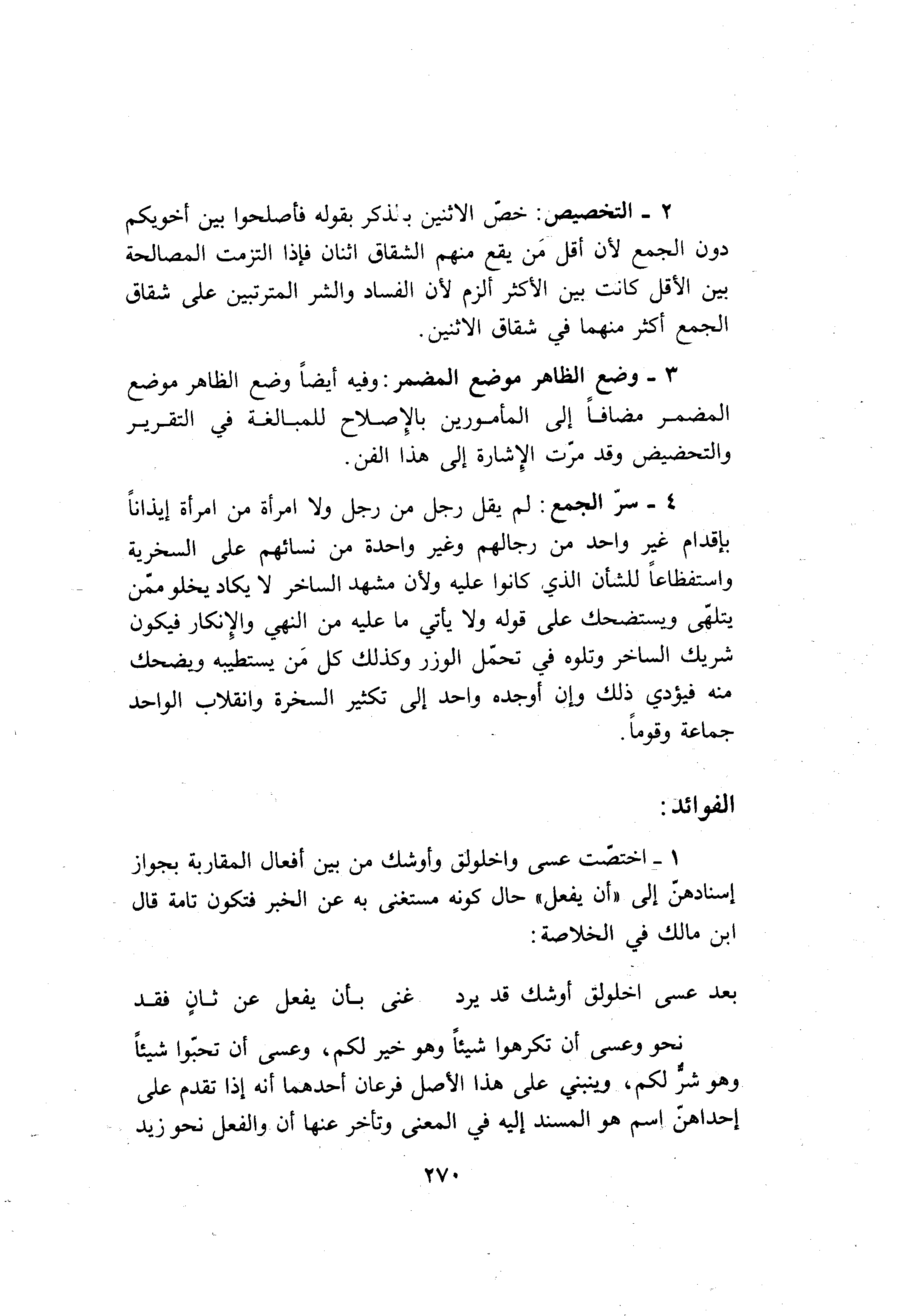 1- اختصّت عسى واخلولق وأوشك من بين أفعال المقاربة بجواز إسنادهنّ إلى «أن يفعل» حال كونه مستغنى به عن الخبر فتكون تامة قال ابن مالك في الخلاصة: