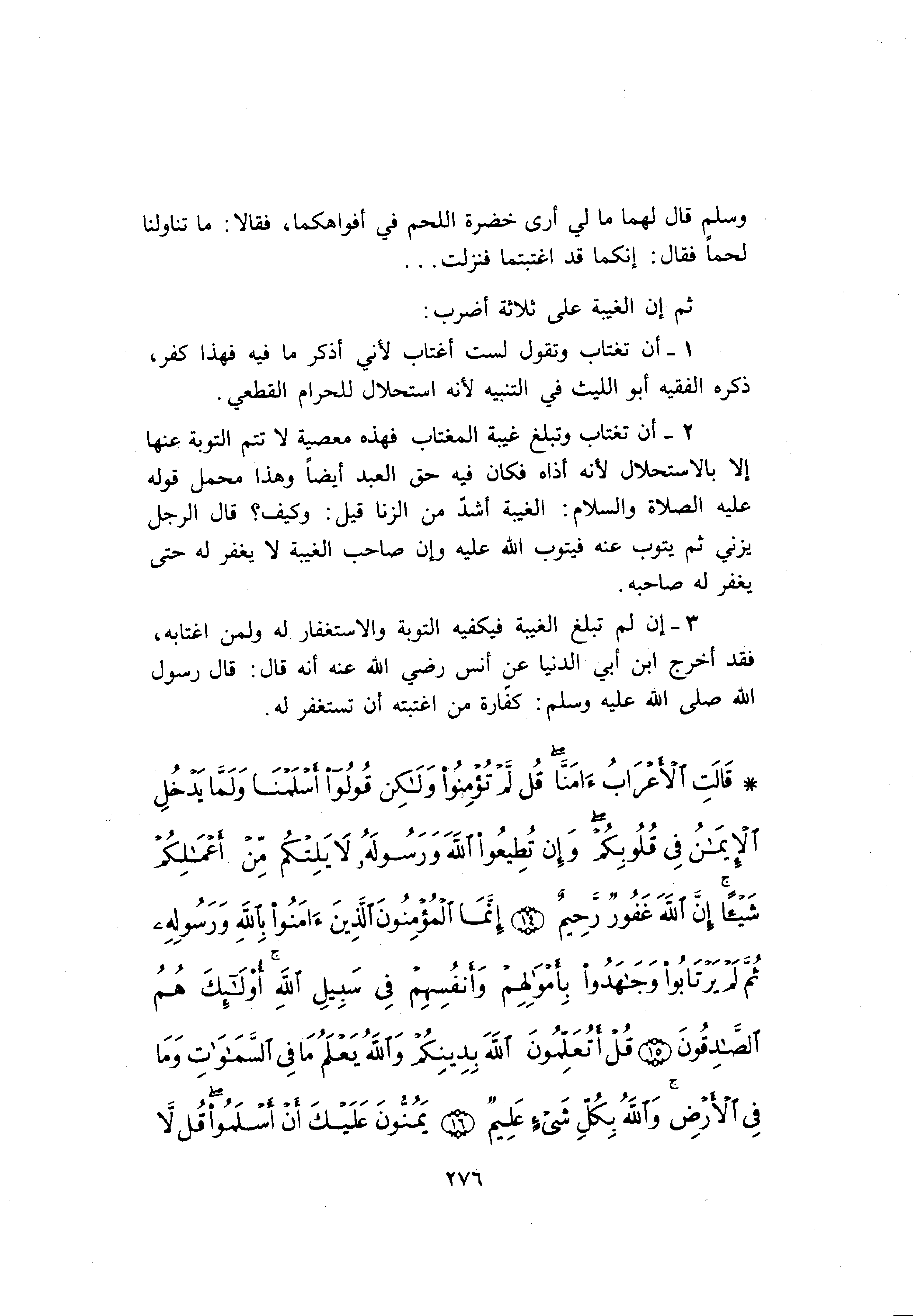 ثم إن الغيبة على ثلاثة أضرب:
