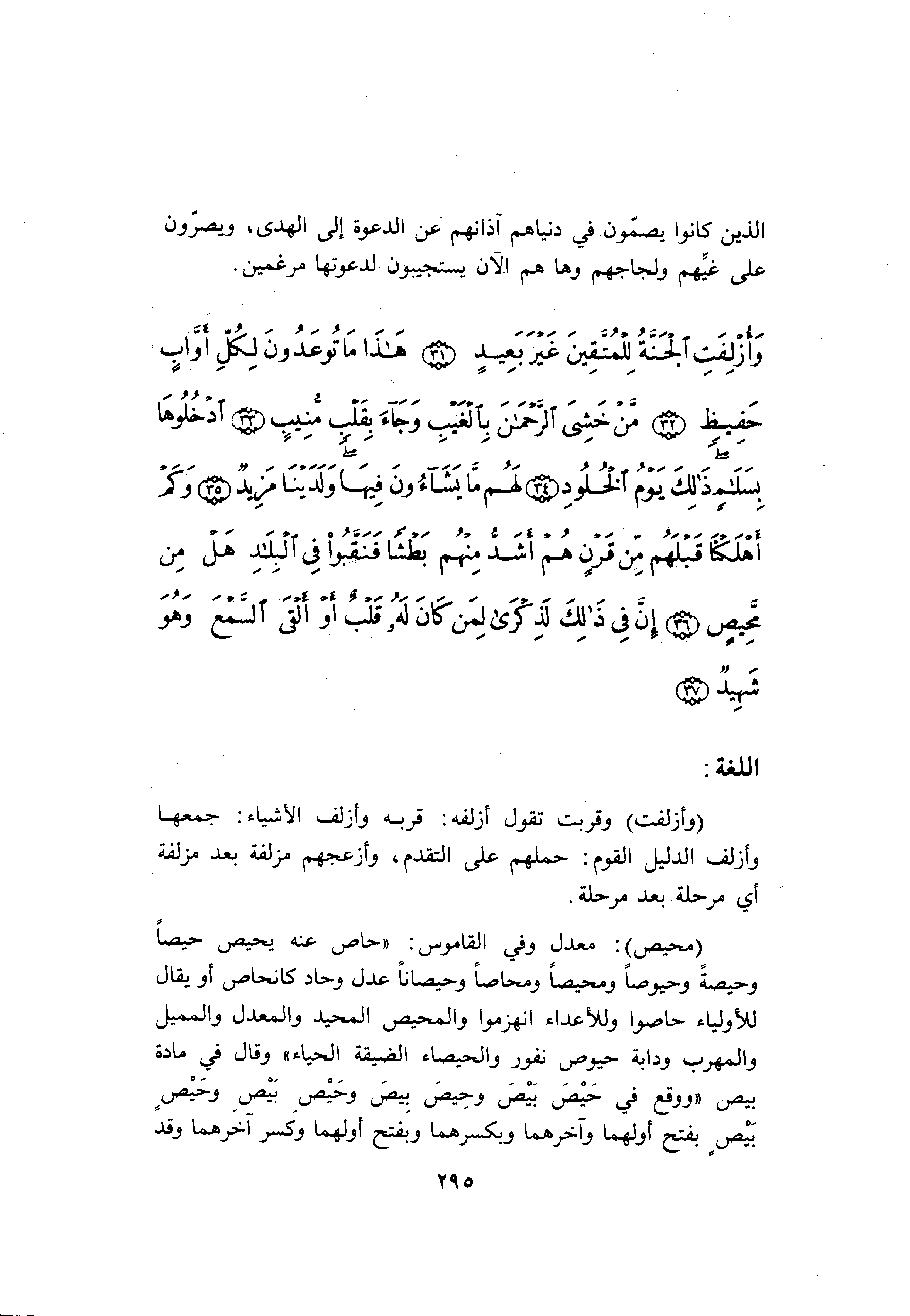 (وَأُزْلِفَتِ) وقربت تقول أزلفه: قربه وأزلف الأشياء: جمعها وأزلف الدليل القوم: حملهم على التقدم، وأزعجهم مزلفة بعد مزلفة أي مرحلة بعد مرحلة.