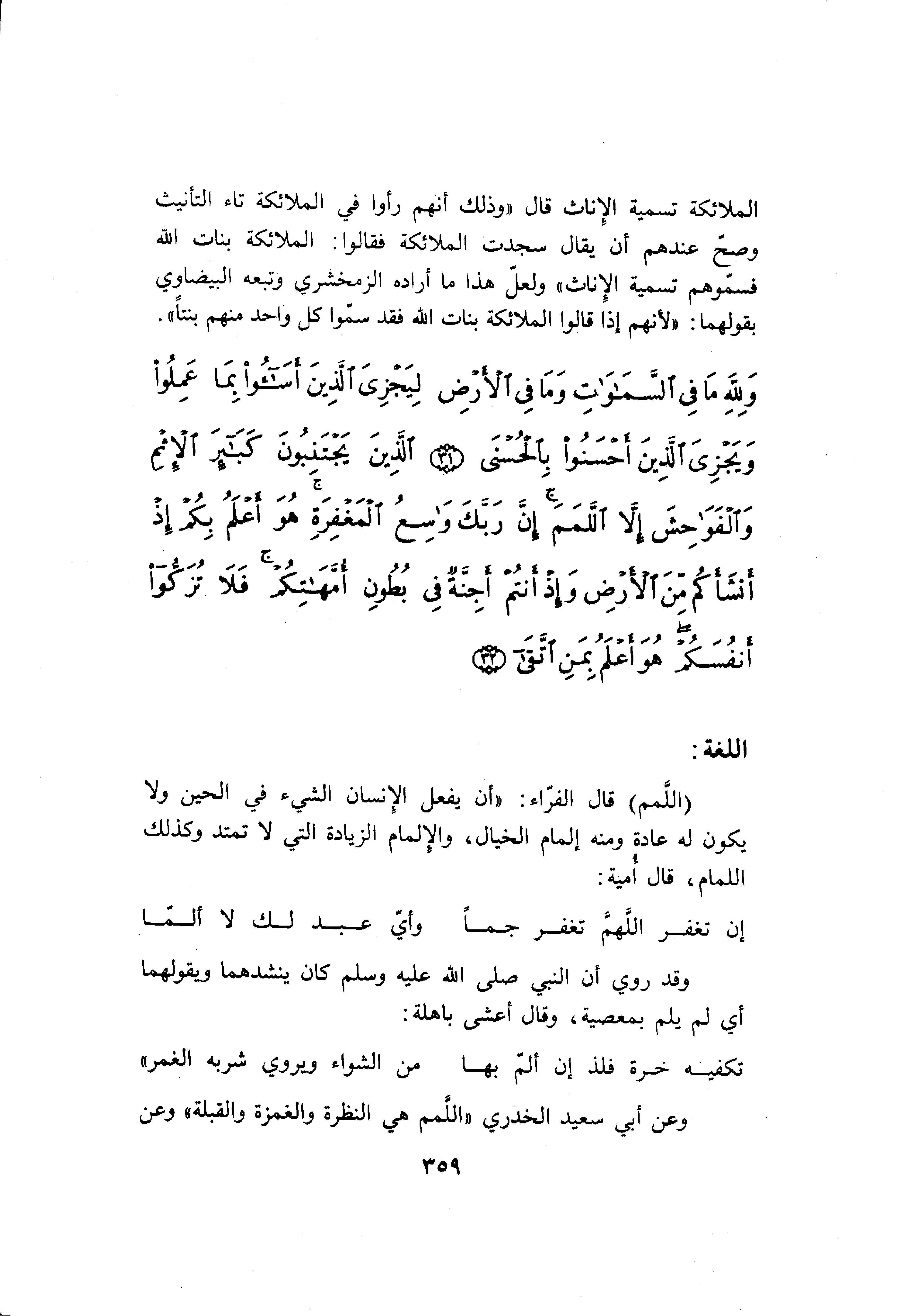 (اللَّمَمَ) قال الفرّاء: «أن يفعل الإنسان الشيء في الحين ولا يكون له عادة ومنه إلمام الخيال، والإلمام الزيادة التي لا تمتد وكذلك اللمام، قال أمية: