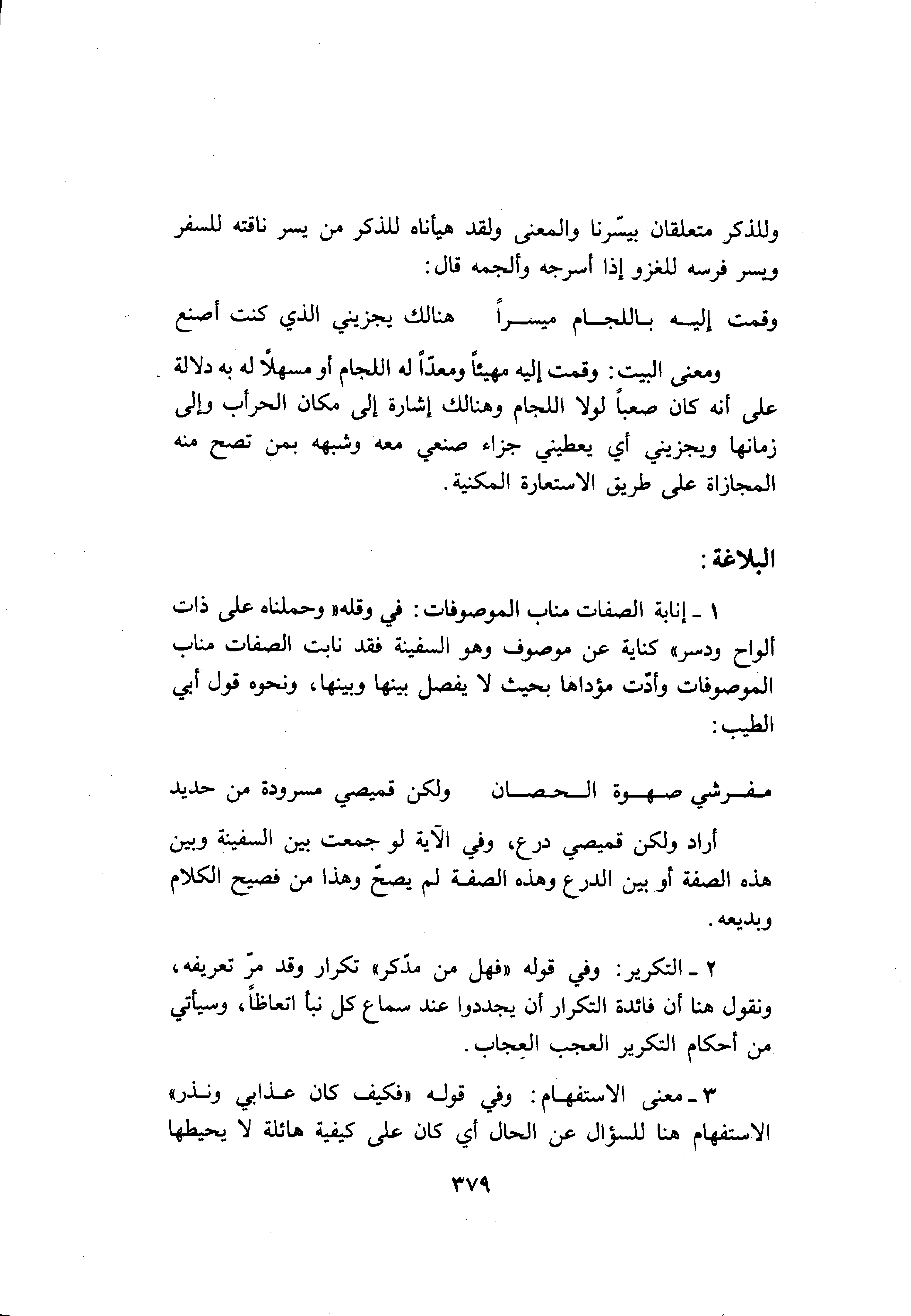 2- التكرير: وفي قوله «فهل من مدّكر» تكرار وقد مرّ تعريفه، ونقول هنا أن فائدة التكرار أن يجددوا عند سماع كل نبأ اتعاظا، وسيأتي من أحكام التكرير العجب العجاب.